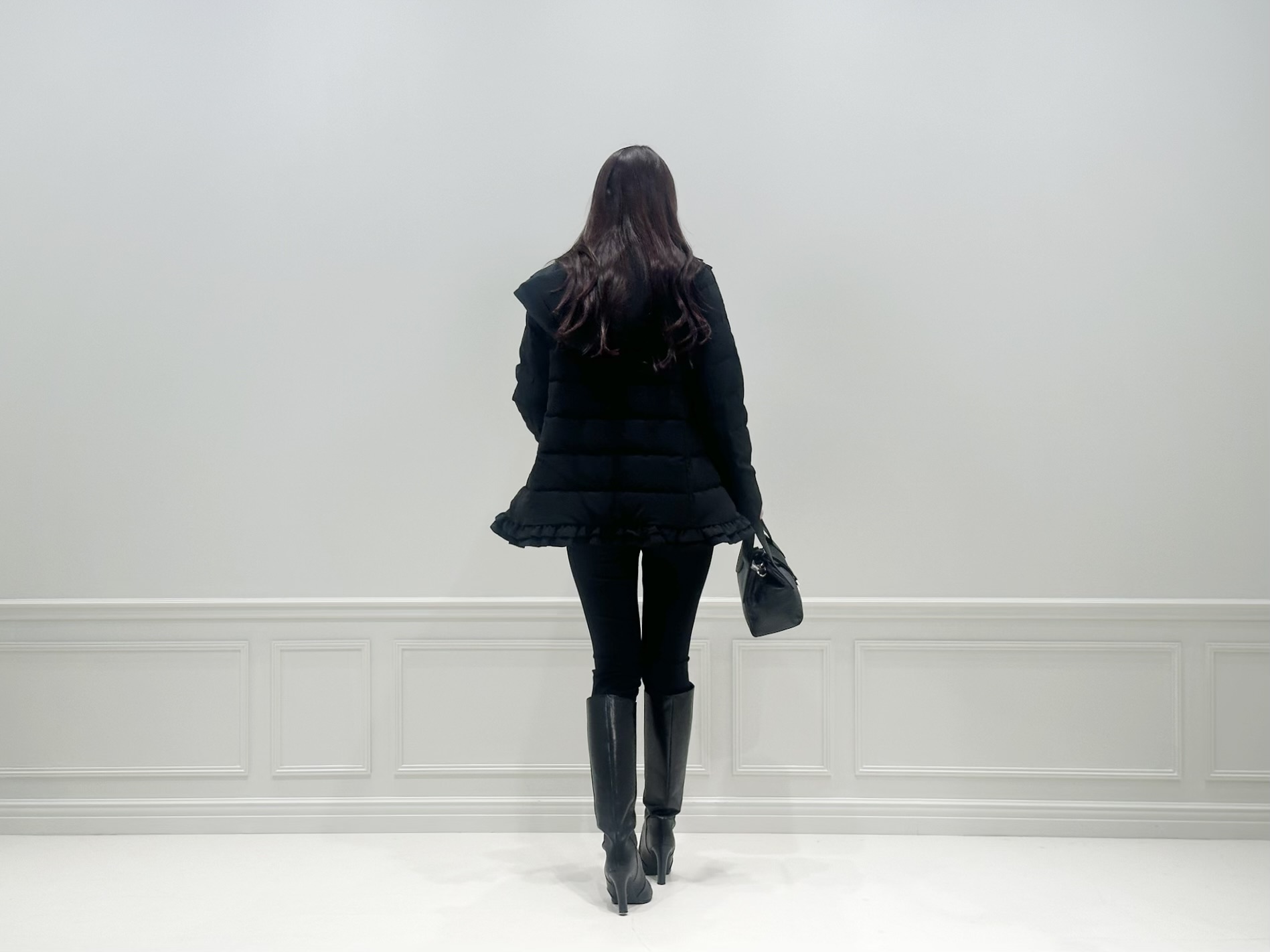 フリルダウンコートなら、防寒性はもちろん、後ろ姿まで美しいシルエットで冬のお洒落を格上げしてくれます。機能性とエレガンスを兼ね備えた一着で、寒い季節のスタイリングをぜひ楽しんでみてください♡