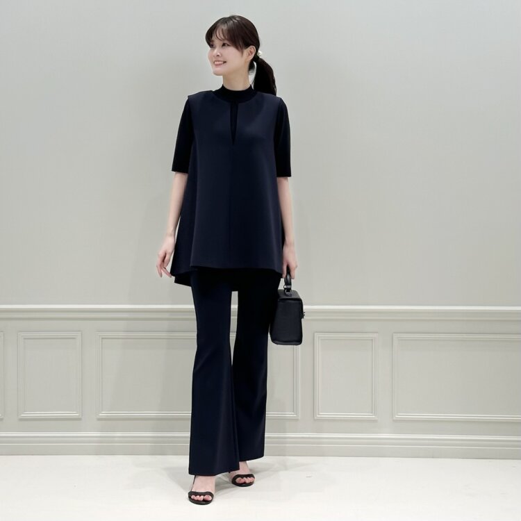 前後差のある丈感は女性らしい立体感のあるシルエットへ導きます。