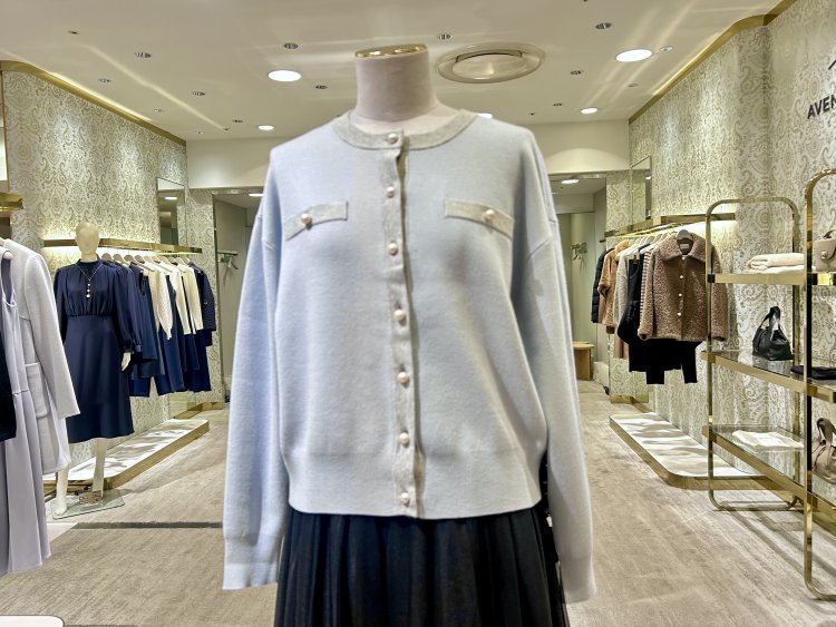ころんとしたパールのボタンが女性らしい華やかさをプラスしてくれます。