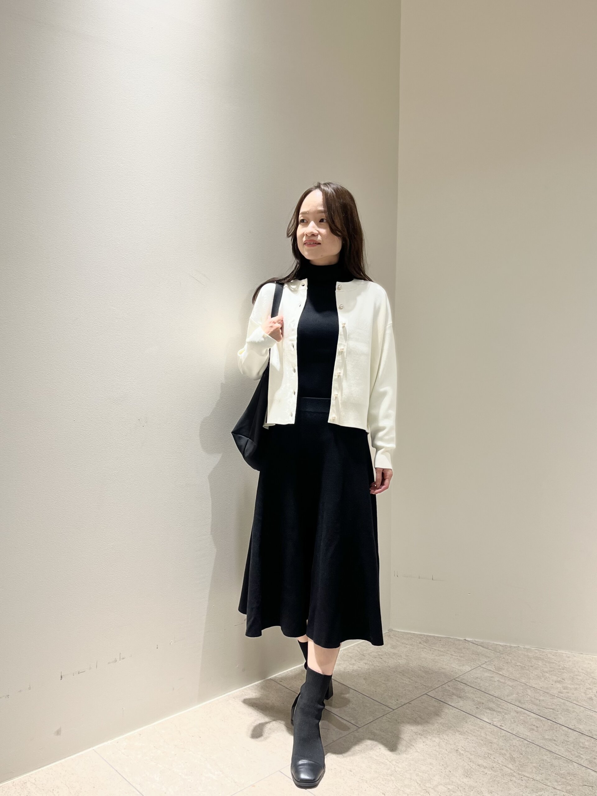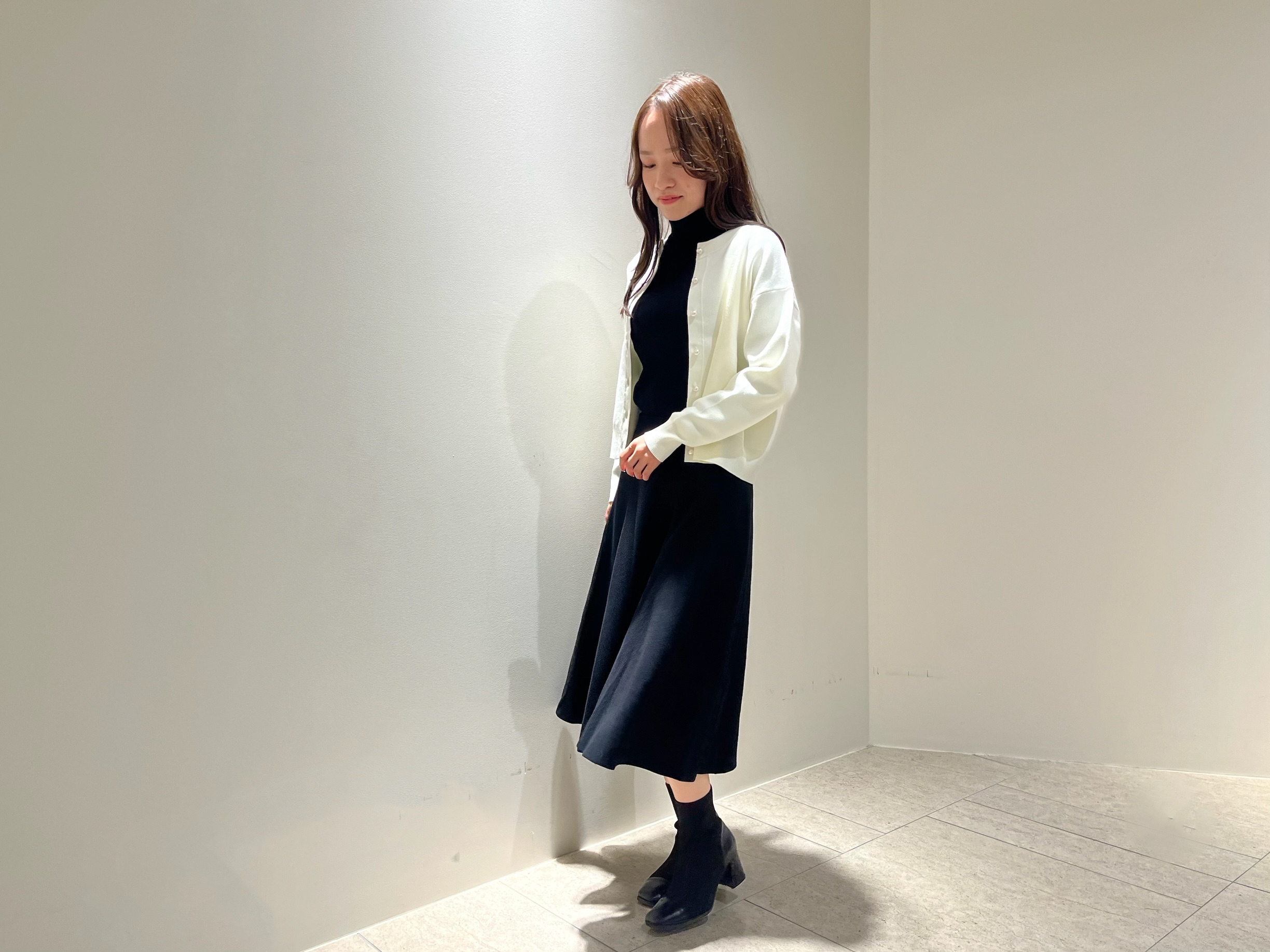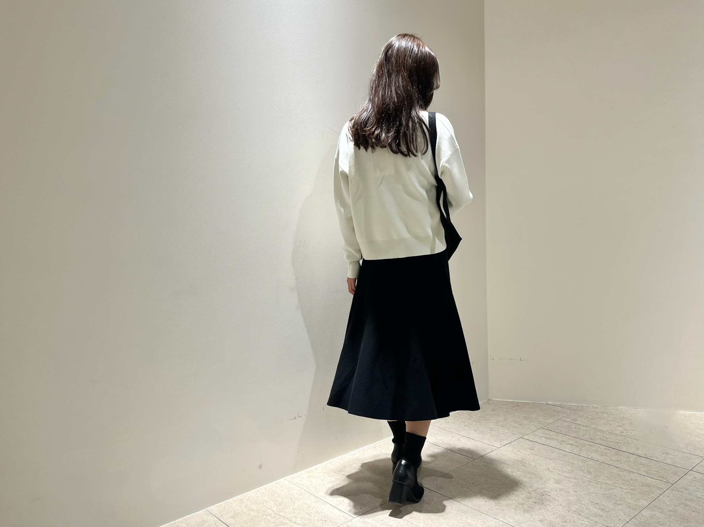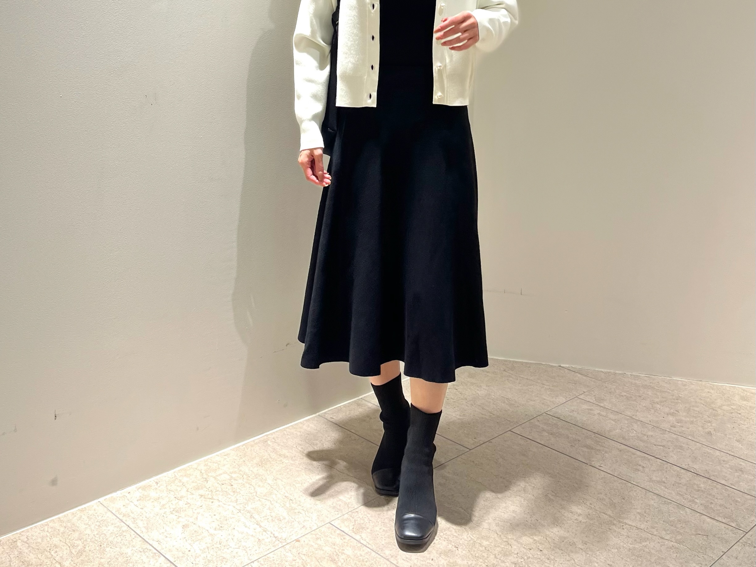 ニットフレアスカートは数年前に購入しましたが、今季も登場している定番人気アイテムです。シンプルなフレアラインのスカートも、ニット素材になることでシーズンムードを高めてくれます。長すぎない膝下丈はこの時期にショートブーツと合わせるとバランス感が絶妙です♡ちなみに、セットアップで着用できるニット(裾スリットタートルネックニット)もありますのでぜひこちらも合わせてご覧ください!