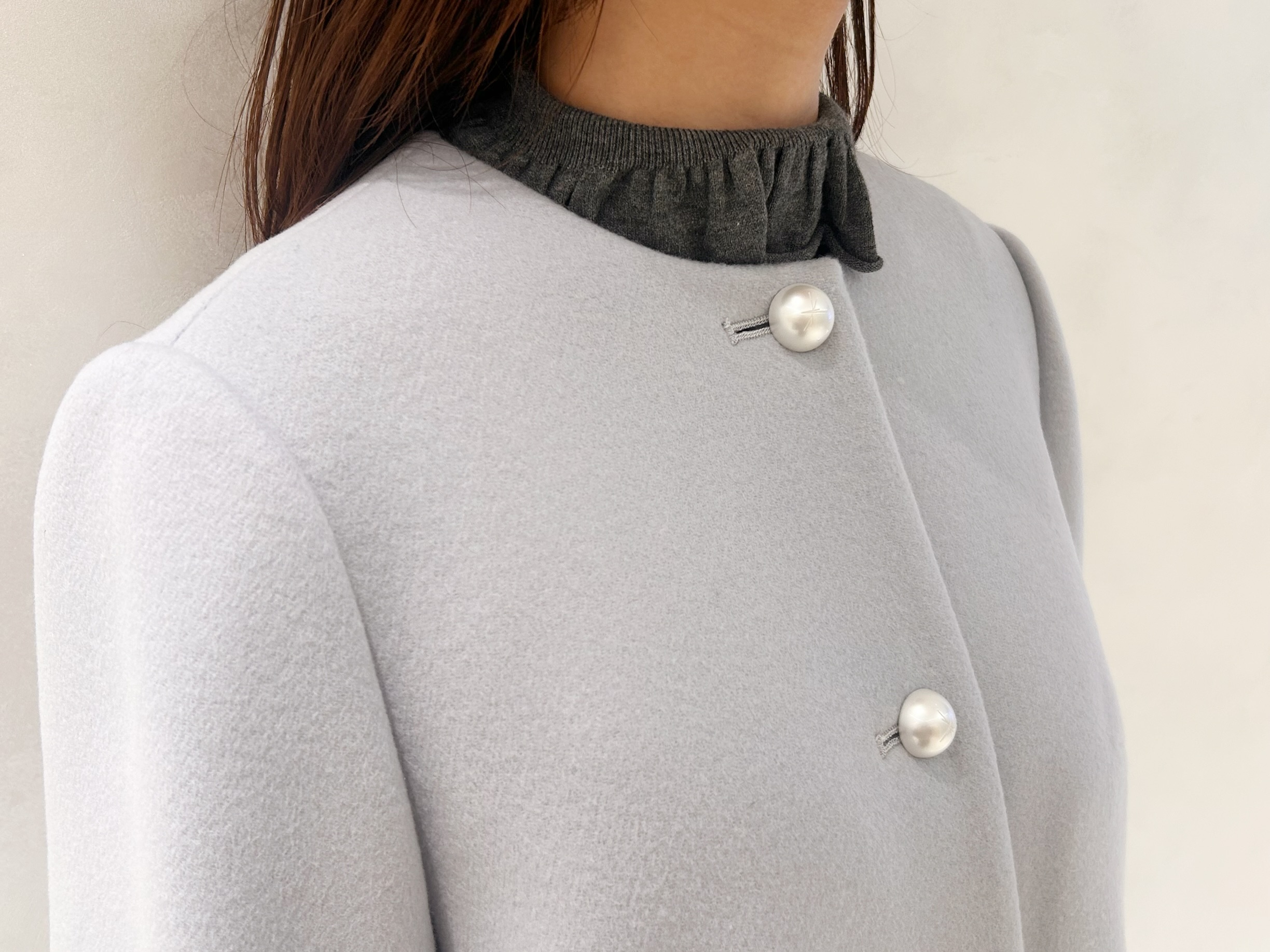 大きめのパールボタンが品よく煌めき、シンプルなデザインに華やかさを添えてくれます。