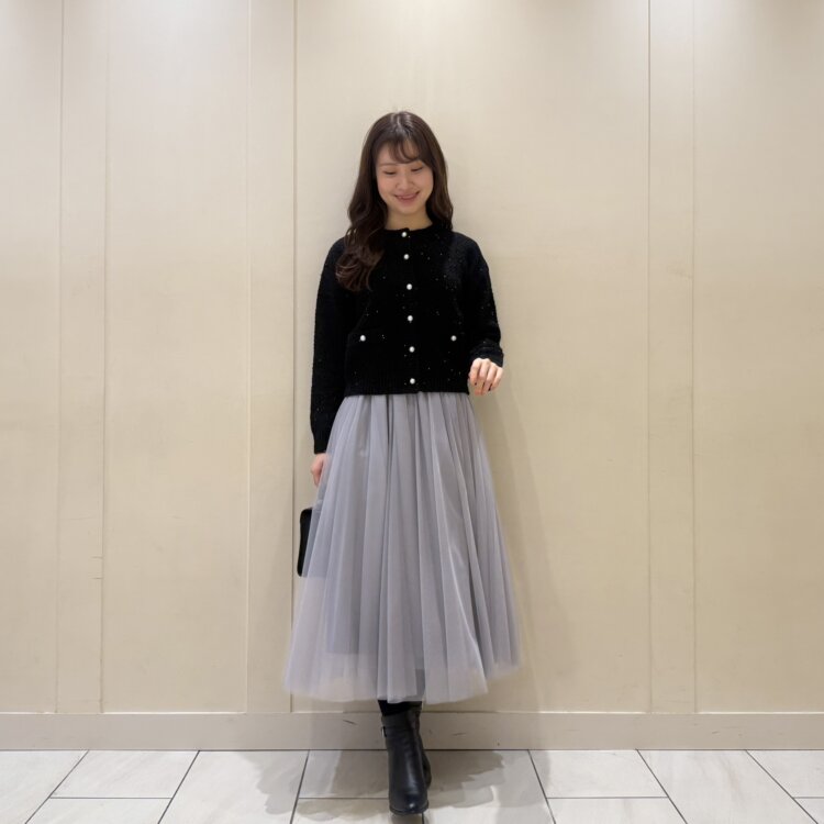 だからこそ、歩くたびにふんわりと揺れる裾が美しく、女性らしい印象に。
