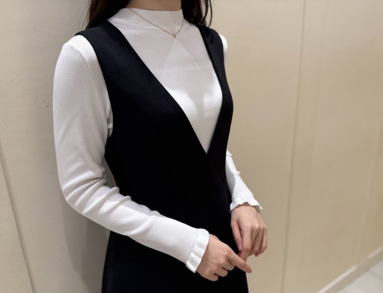 綺麗めなハイネックデザインに、袖口にあしらわれたさりげないフリルが大人可愛いアクセントに♡