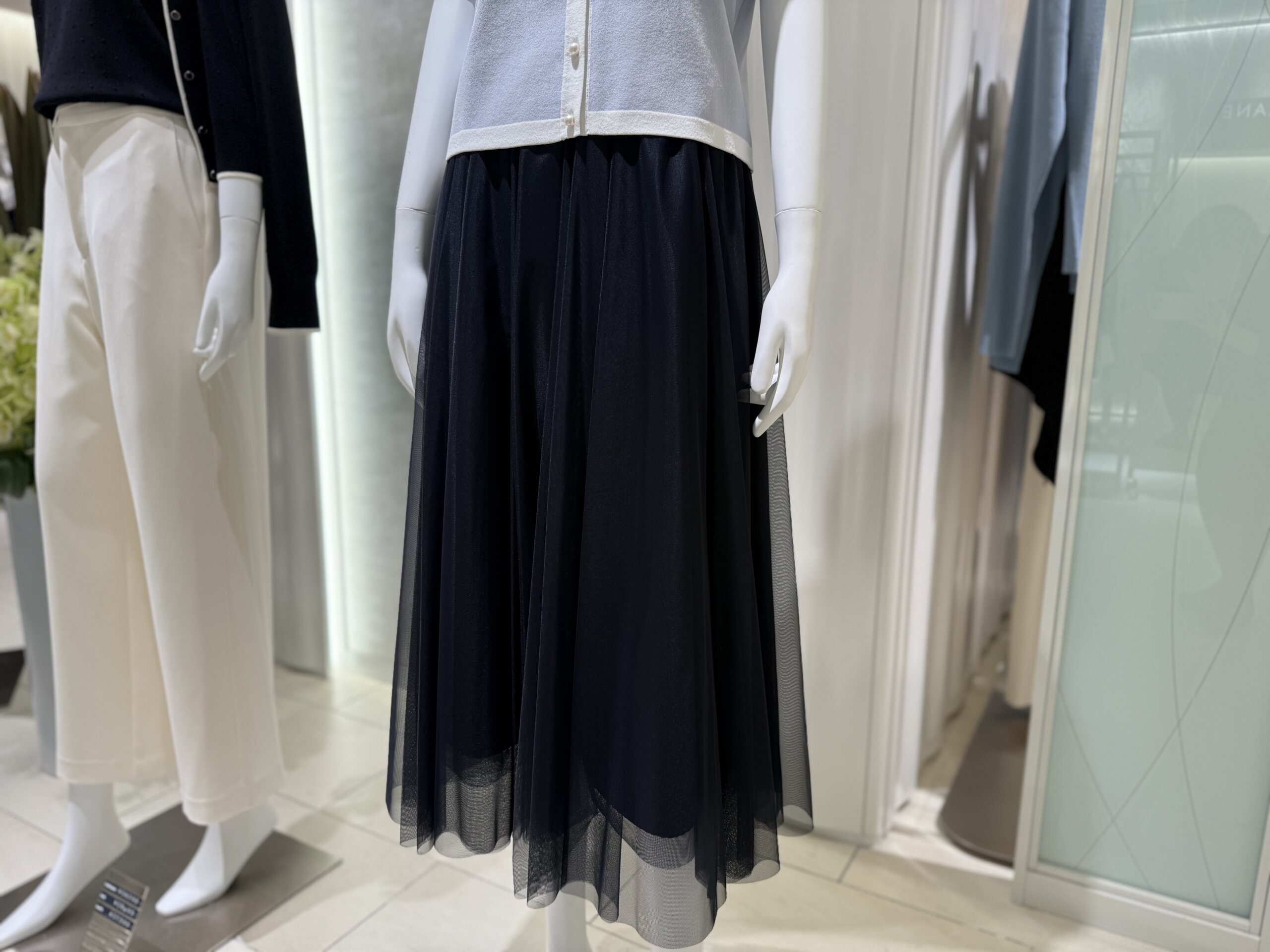 AEで定番人気のチュールスカートは、シーズンレスで活躍していただける万能アイテム!取り入れるだけで、女性らしいエレガンススタイルを叶えてくれます。裾の透け感が品の良さをキープしながら、ロング丈でも軽やかで繊細な足元を演出♡バックウエストはゴム仕様ですので、快適な着心地なのも嬉しいポイントです◎。