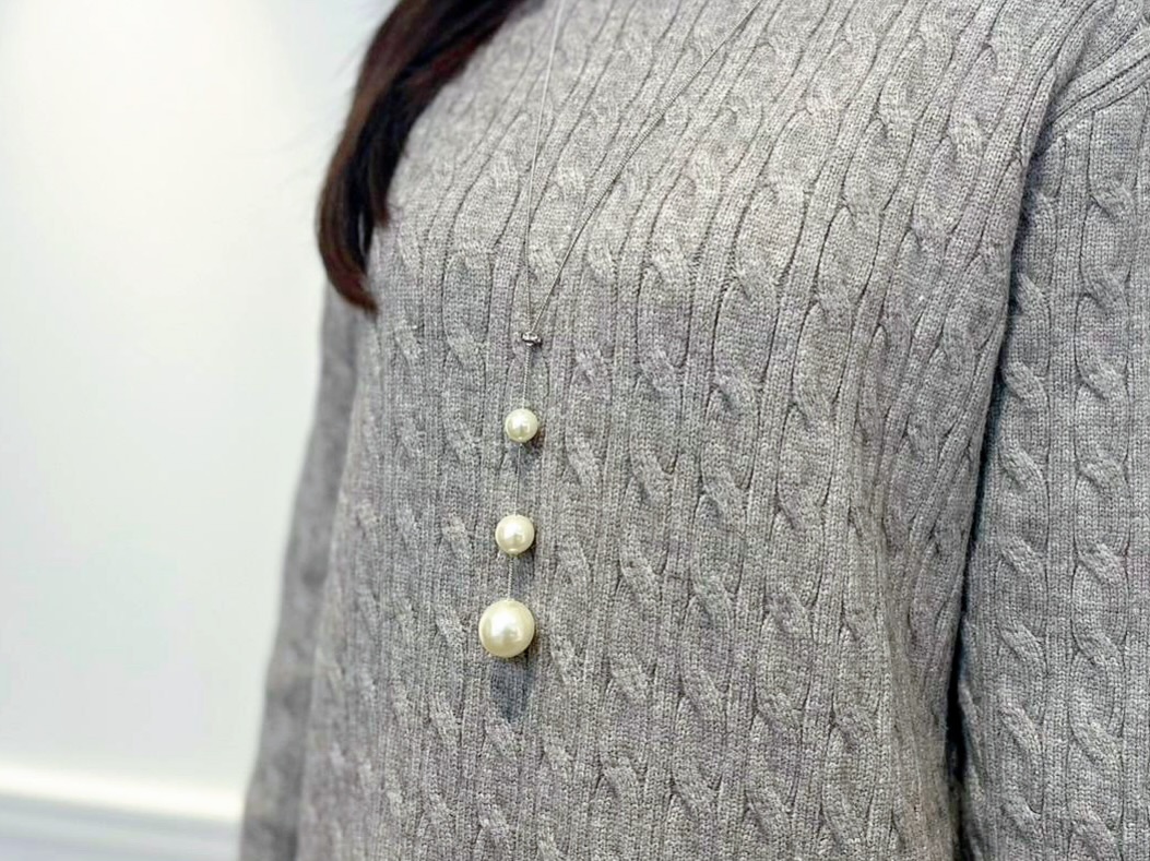 アクセントには、胸元で揺れるトリプルパールネックレスを。さりげない輝きが、シンプルなスタイリングを上品に引き立ててくれます。仕上げにレザーバッグを添えて、OFFの日にも気分の上がる冬の装いに。