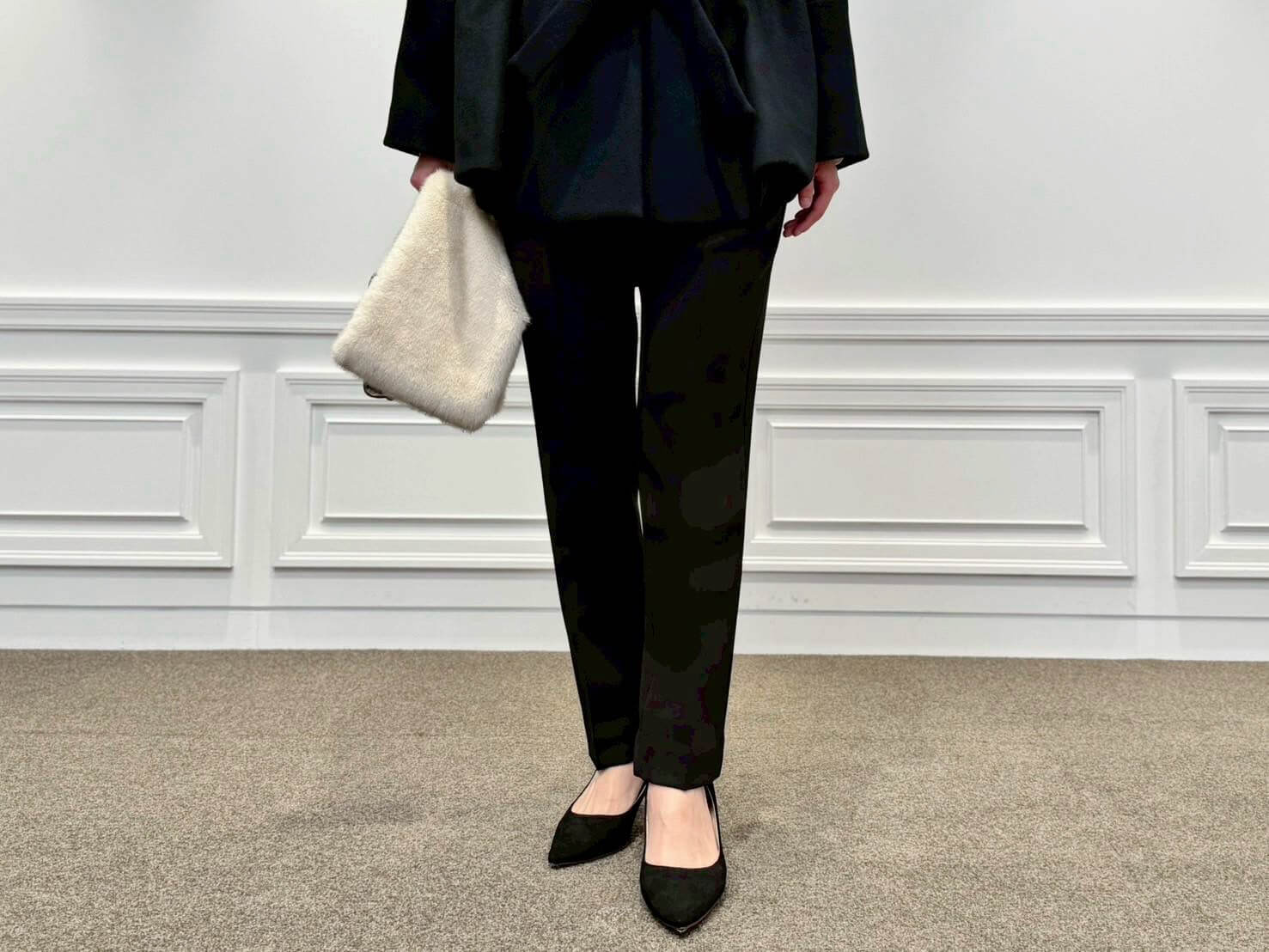 シンプルなデザインながら、計算されたシルエットで脚をまっすぐに見せてくれます。