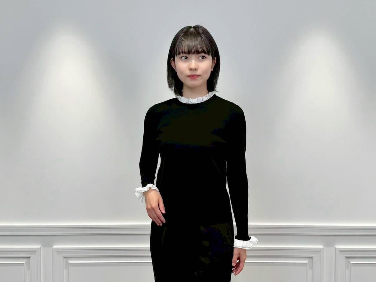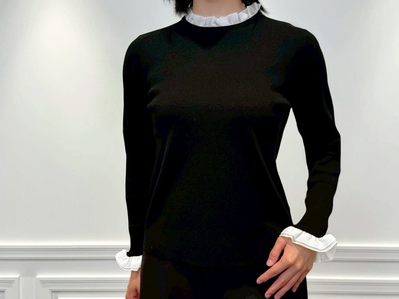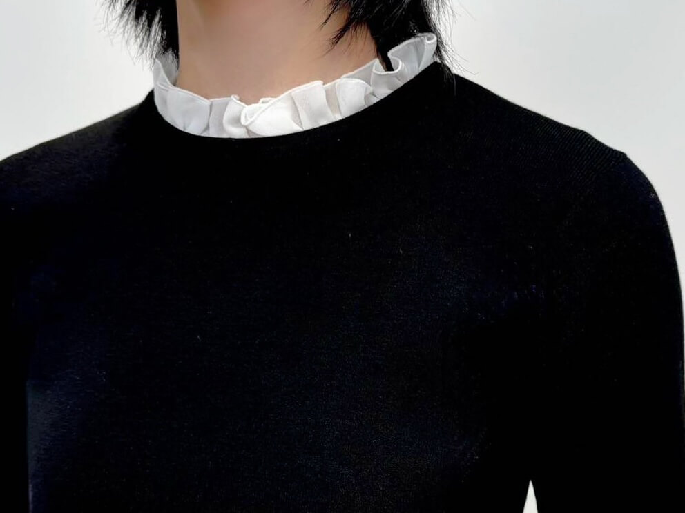 ブラックに白フリルが映えて、顔まわりを明るく見せてくれます。