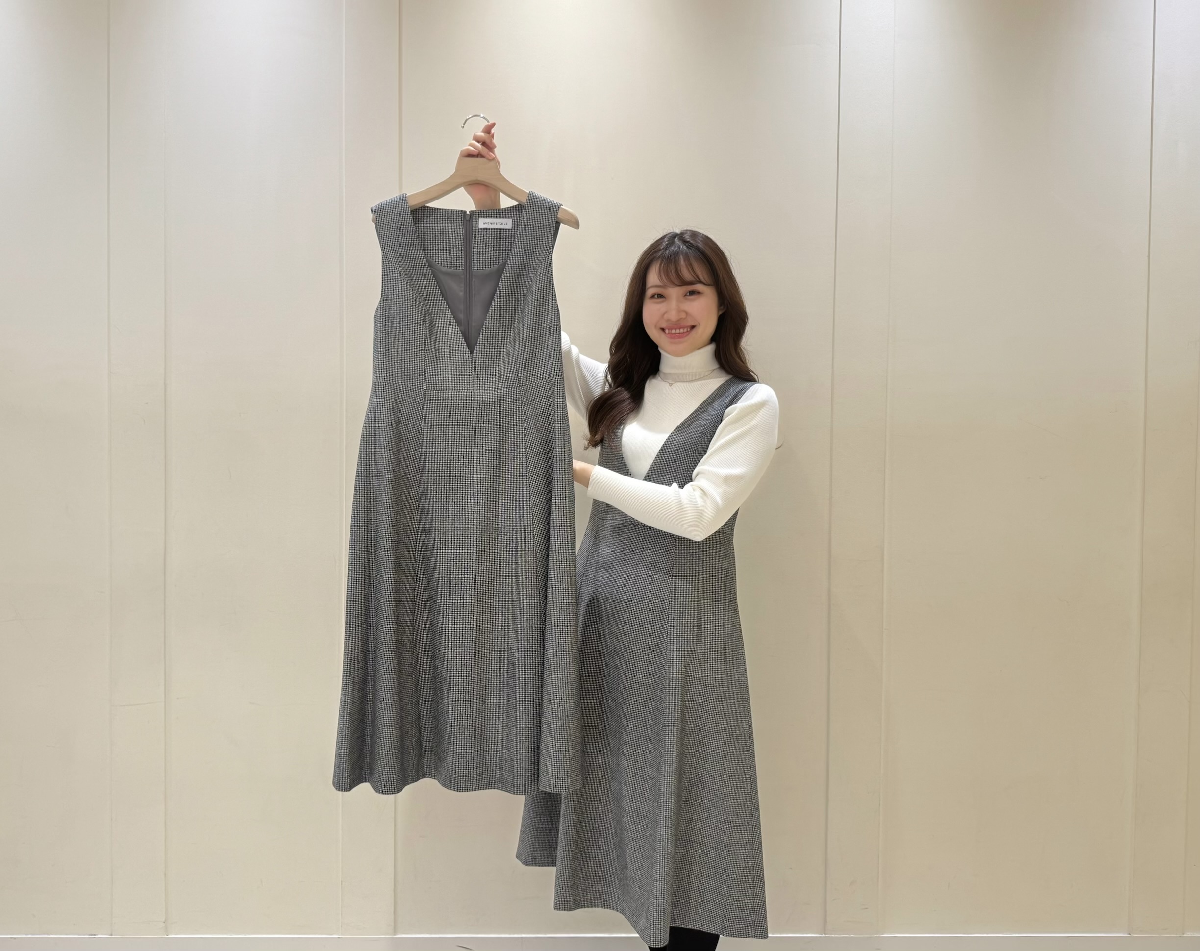 今週のCHECKアイテム!/ 千鳥格子Vネックジャンパースカート@伊勢丹新宿店