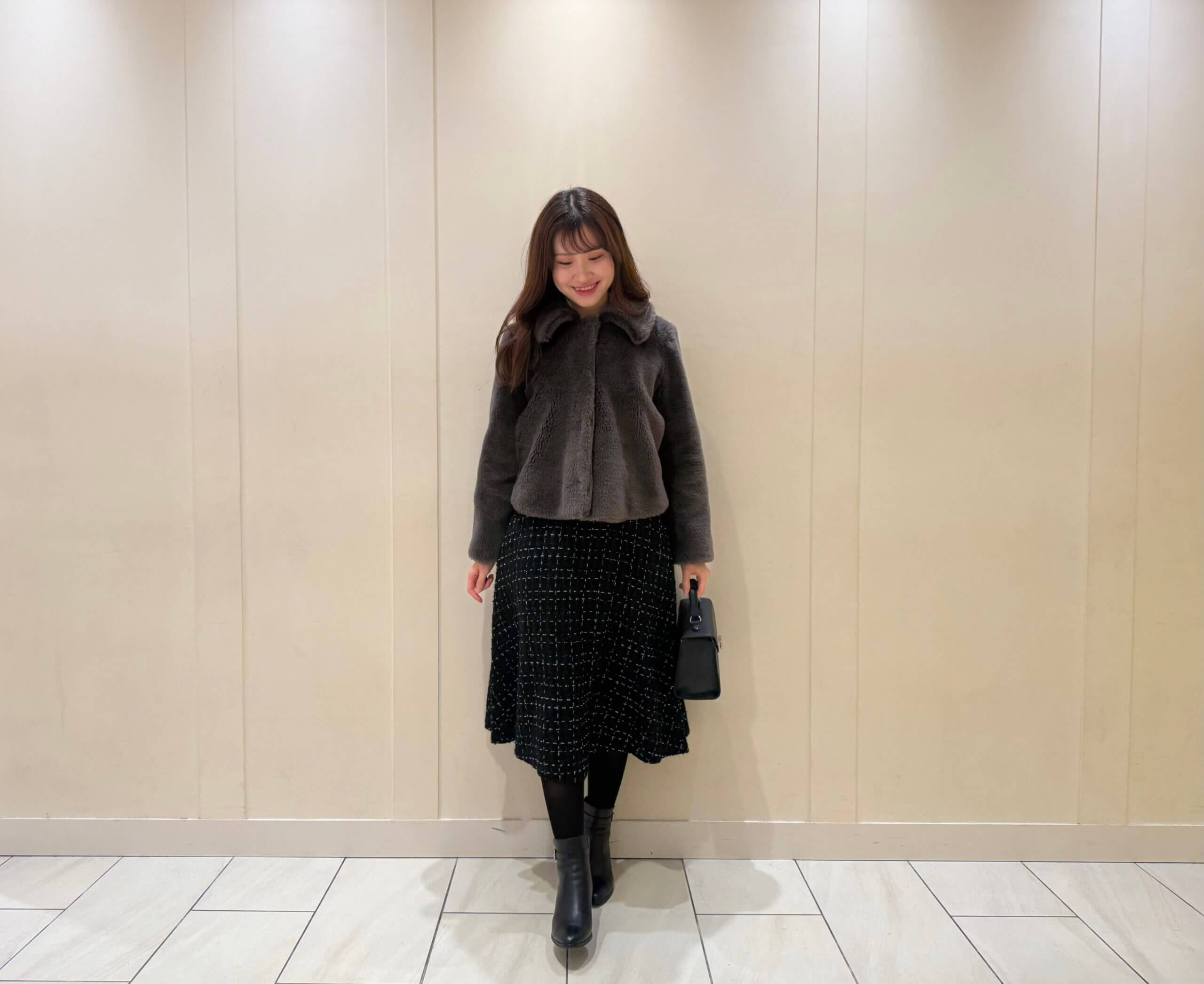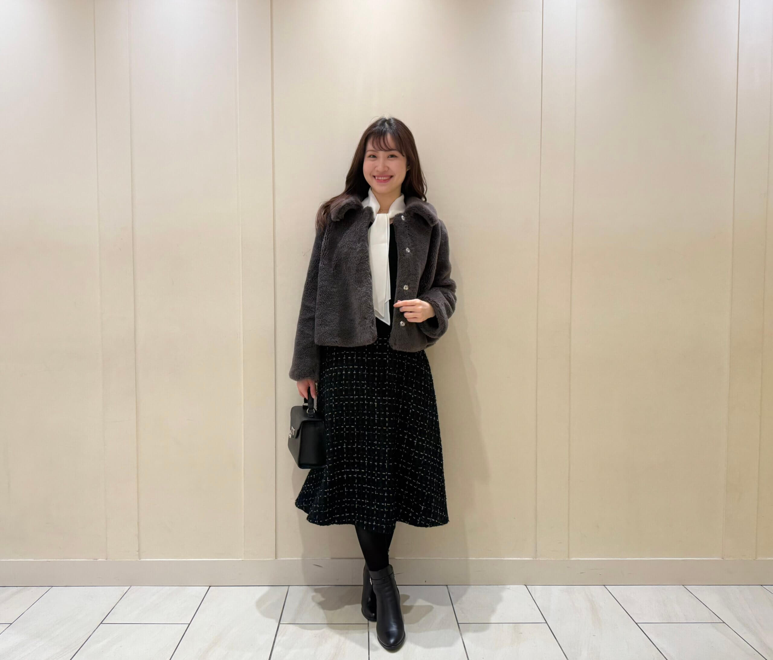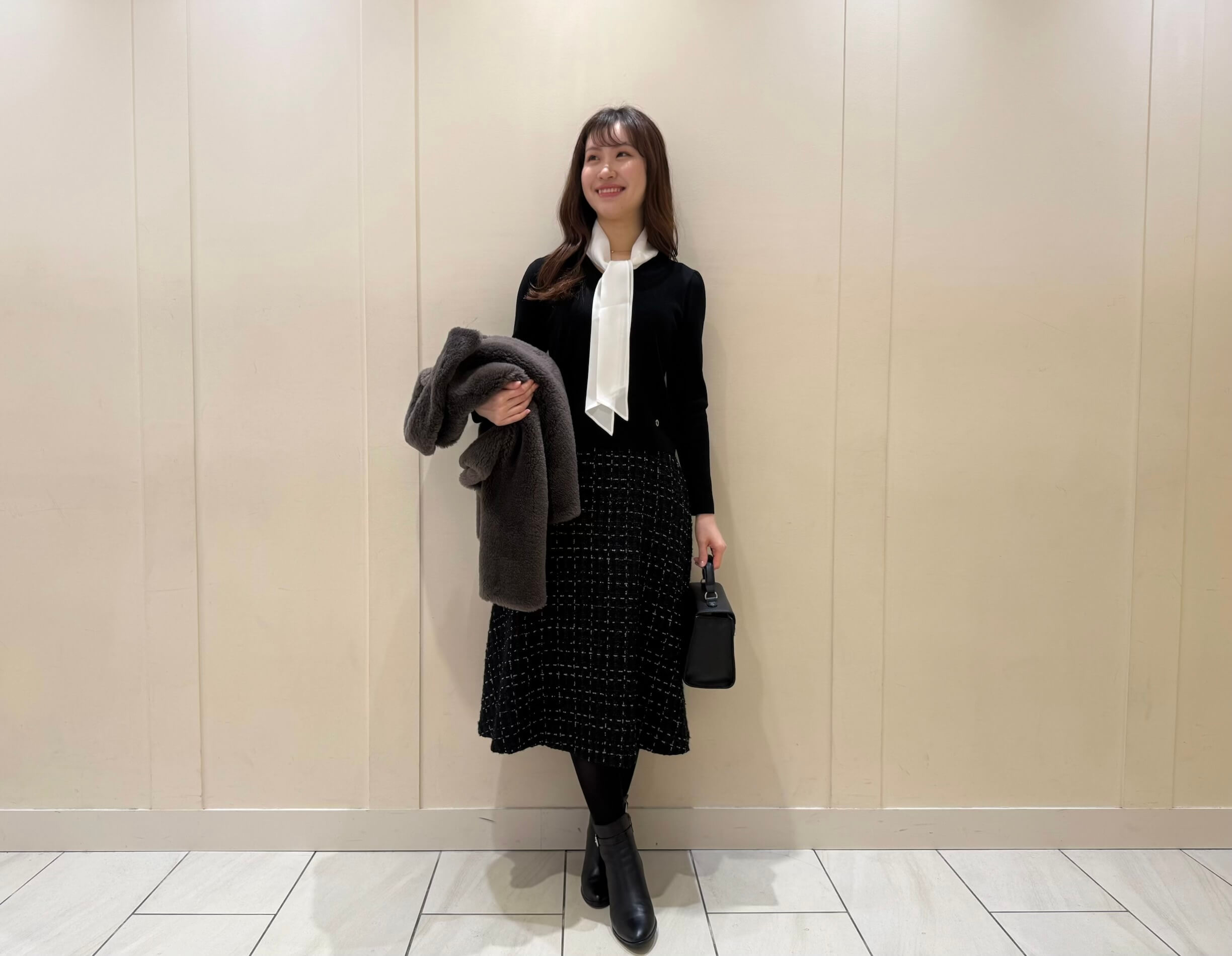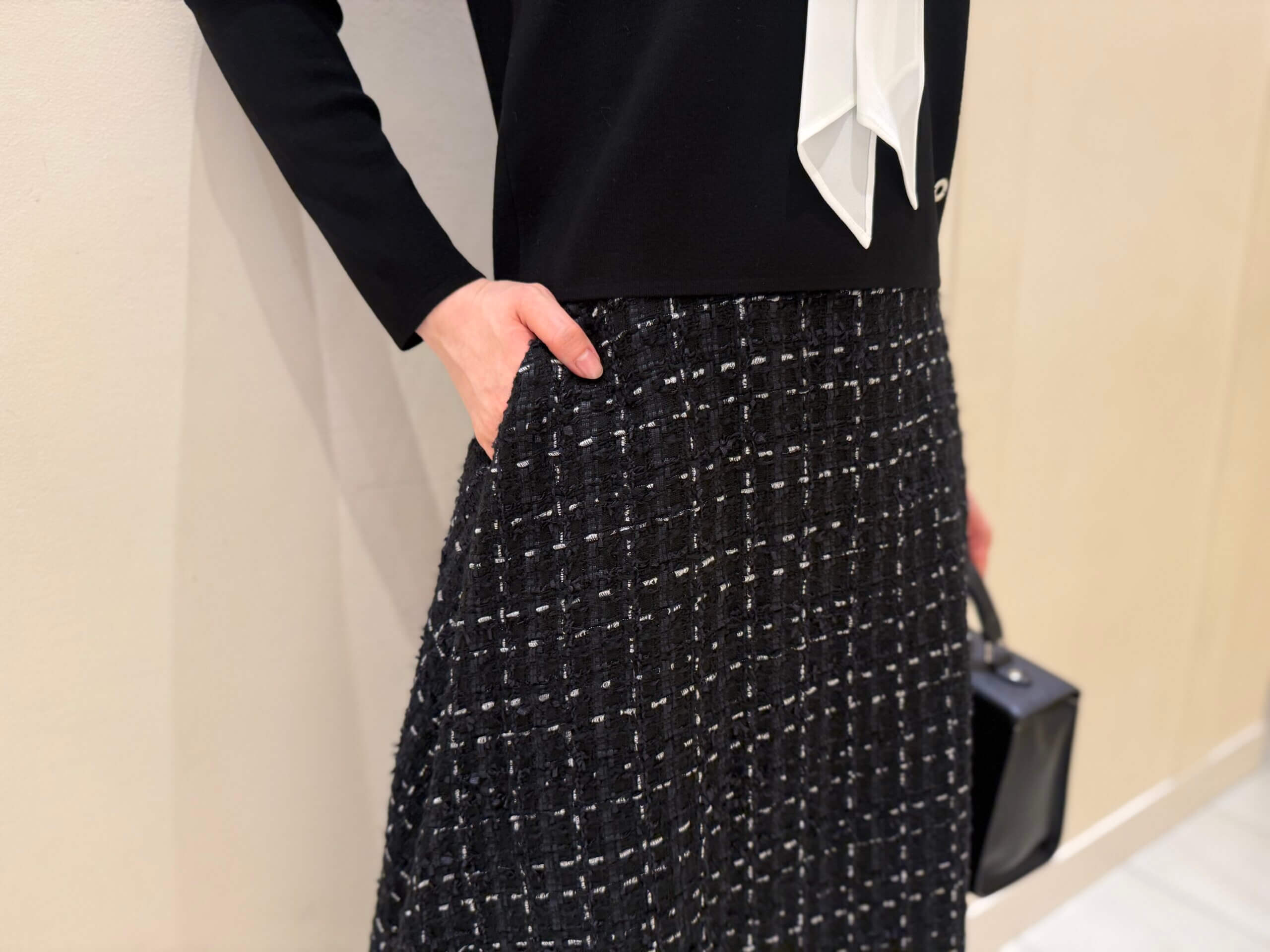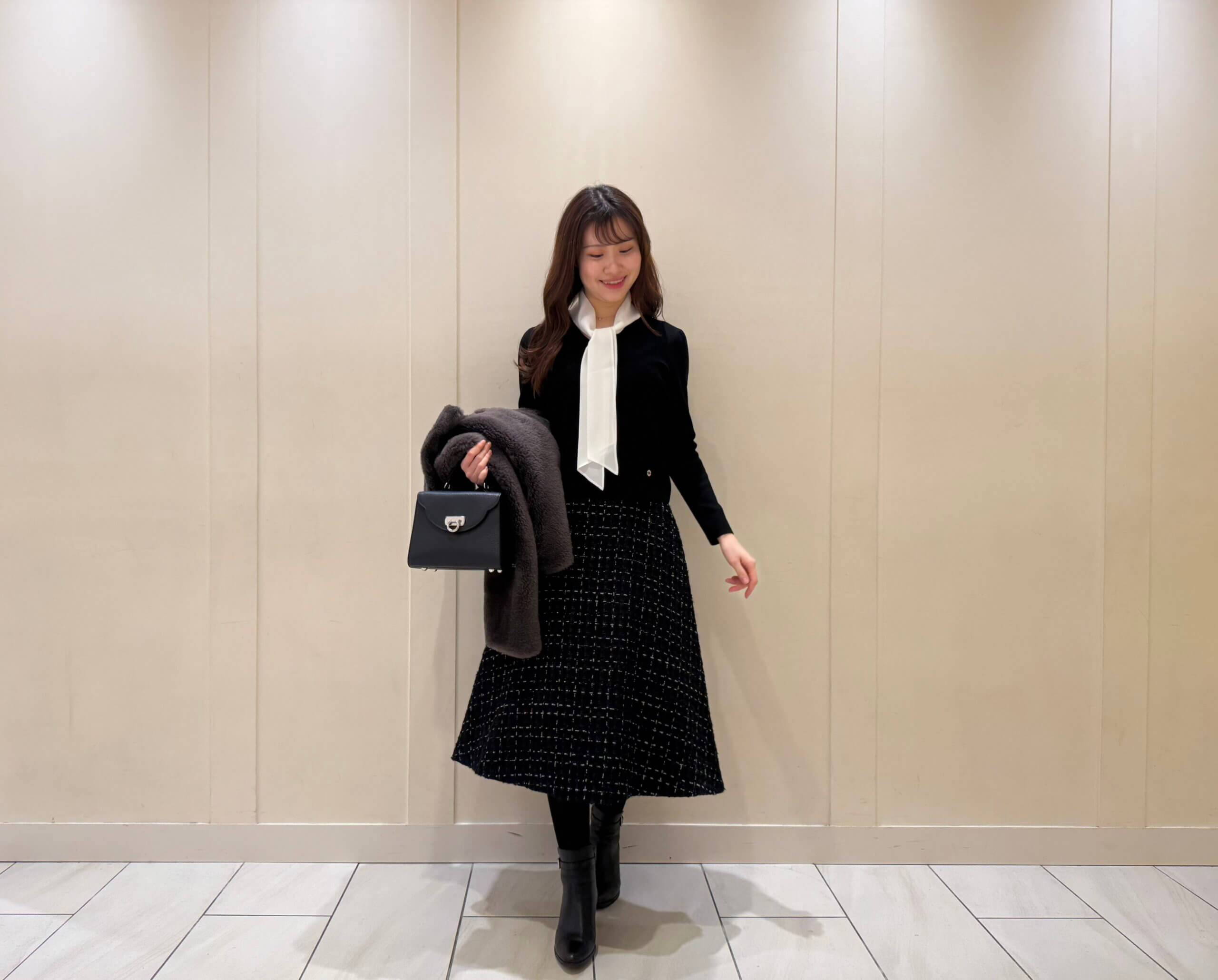 ホリデーシーズンのお出かけに♡上品ボウタイニット×煌めくツイードスカートで魅せる大人フェミニン@伊勢丹新宿店