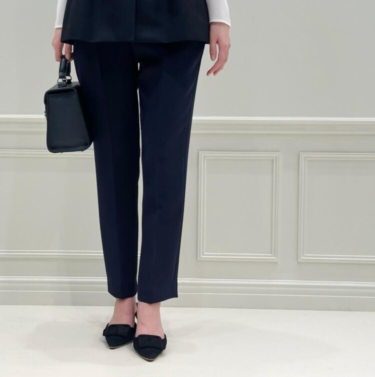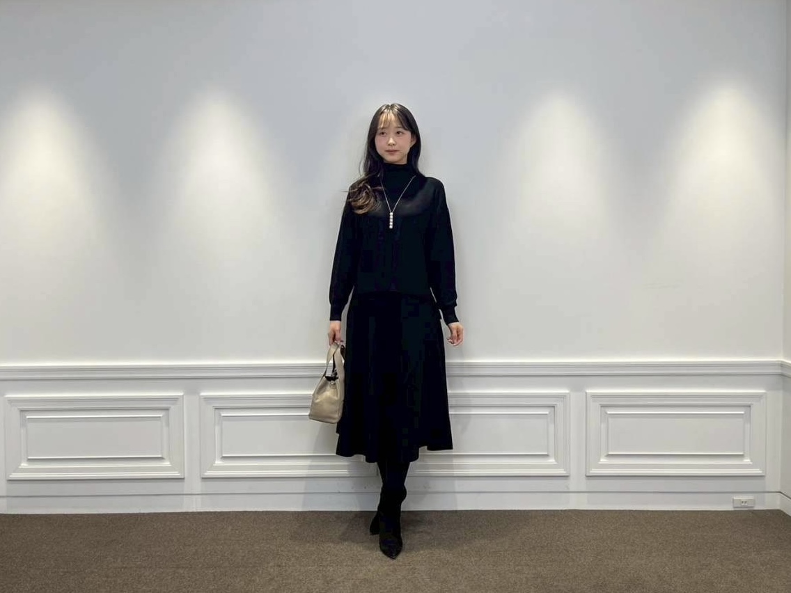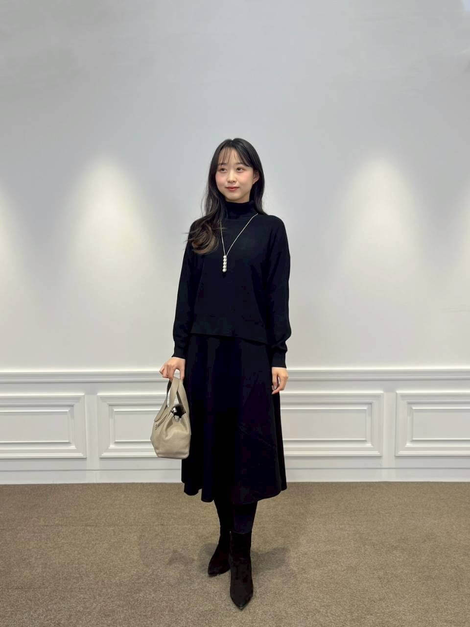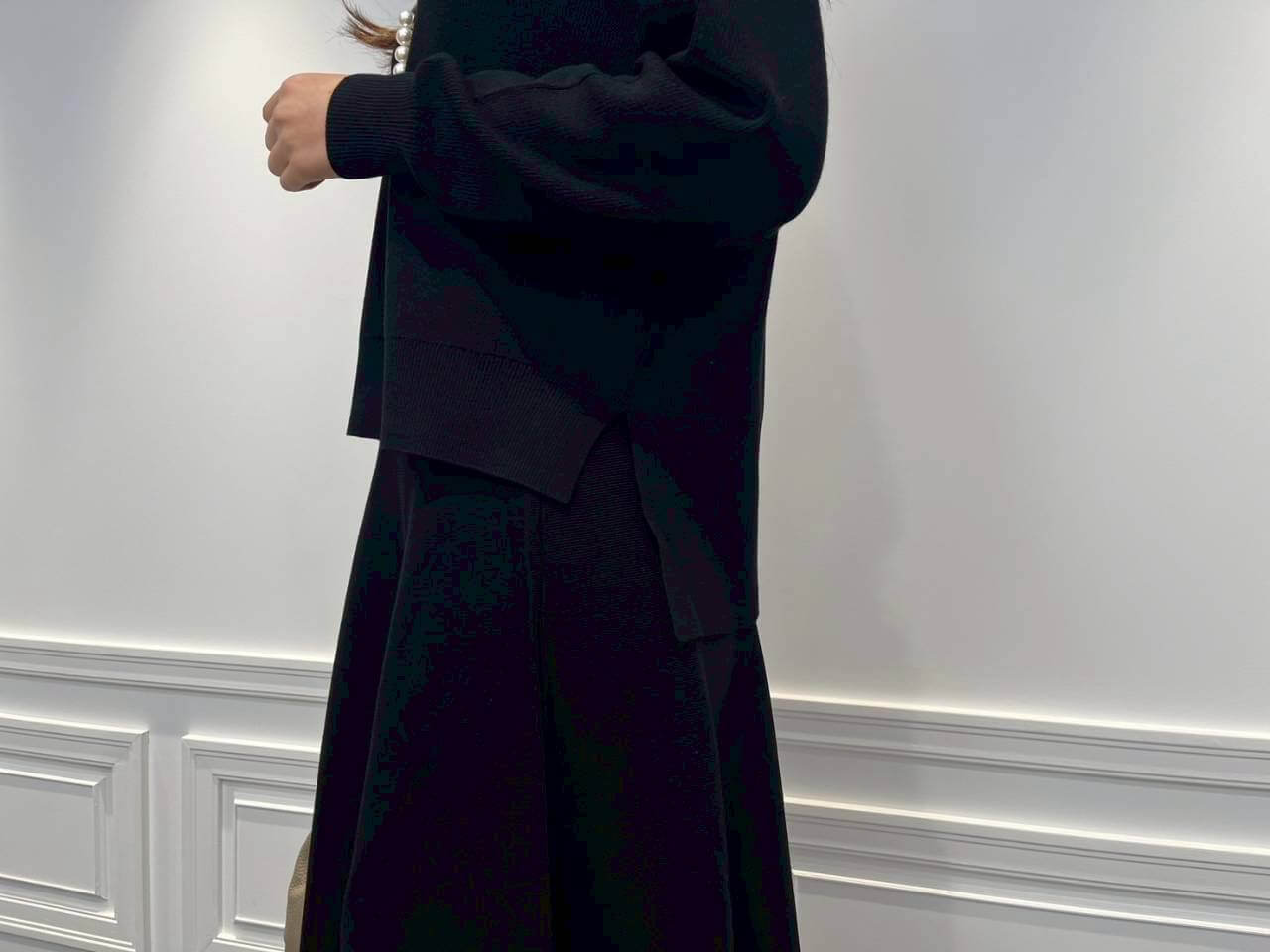 トップスとスカートを合わせるだけでコーディネートが決まり、忙しい朝でも悩まずきちんと感のある装いが完成します。素材やカラーに統一感があるため、オールブラックでも重たく見えず、上品で洗練された印象に。セットアップとしてはもちろん、それぞれ単品でも着回せるので、シーンや季節に合わせたスタイリングの幅が広がるのも大きな魅力です。