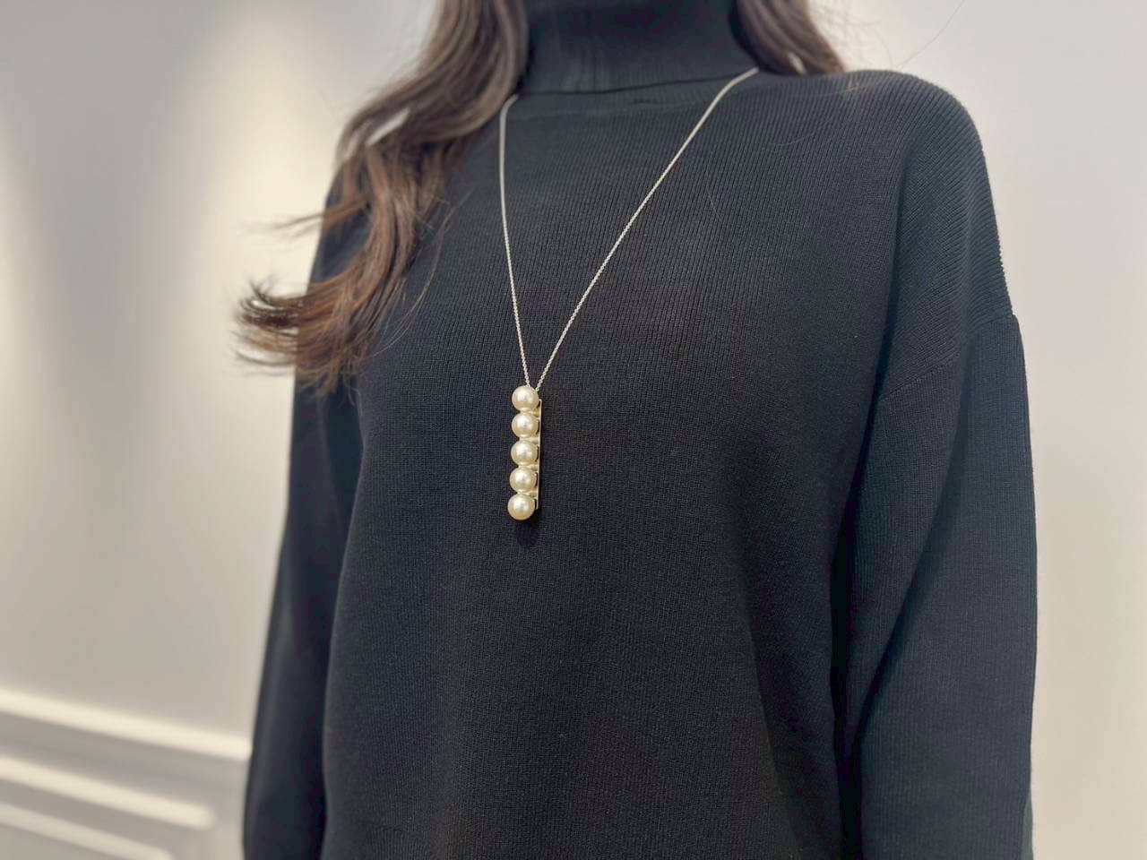 最初のシンプルなデザインの中に、5粒パールの程よい存在感があり、いつものニットやワンピースに合わせるだけで装いが完成する汎用性の高さが魅力です。長さ調節ができるため、その日の気分やスタイリングに合わせて印象を変えられる点も、「気づけば手に取ってしまう」理由のひとつ。入荷のたびにお問い合わせが多く、店頭・オンラインともに揃うとすぐに動きが出る、人気の高いアイテムです。