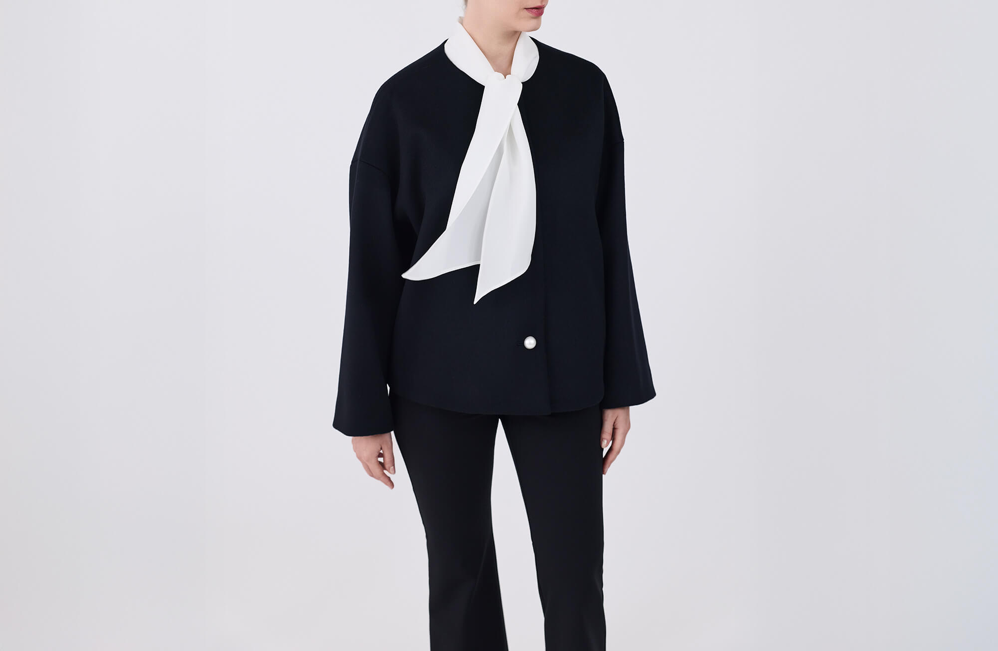 STYLE BOOK 〜 LIAISON 2025 〜「パールが映える、モノトーンの洗練ショートコートスタイル」