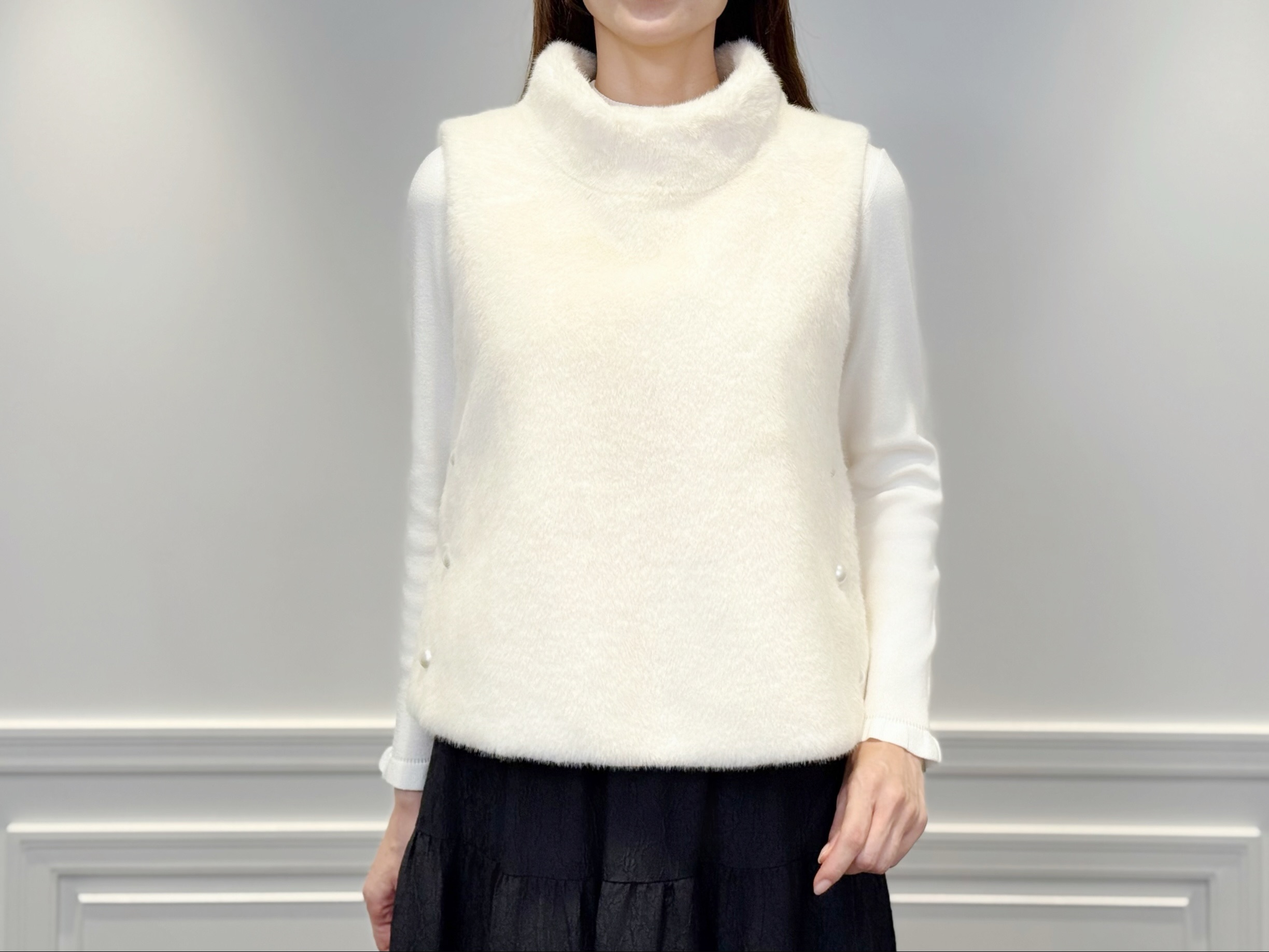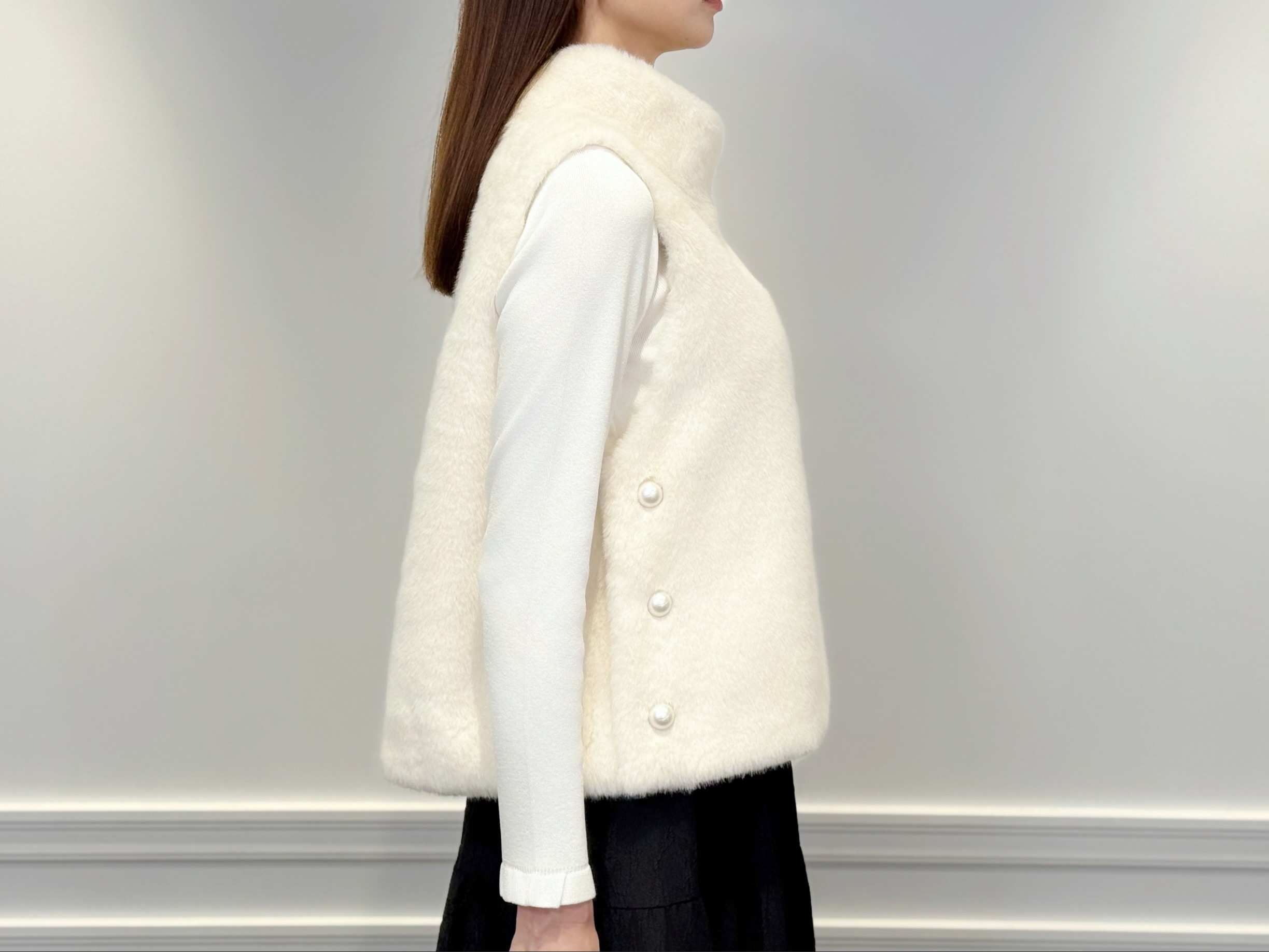 FEW ITEMS / トレンド感満載の格上げアイテム♡“サイドパールエコファーハイネックジレ”