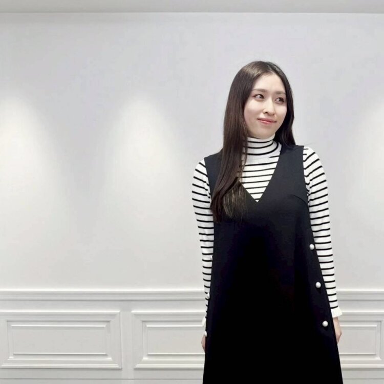 AVENIRETOILEのオリジナルツイード生地を使用しており、他にはない特別感に溢れた一着です。丈は膝下が隠れるほどのお作りで、長過ぎず短過ぎず足さばきも楽々行っていただけます。首周りはすっきりとした印象に導く深めのVネックなのでインナーに合わせていただけるアイテムの幅が広く、様々なコーディネートにお使いいただけます♪ふわっと広がったAラインのワンピースなので、身体に沿ったリブニットなどとの相性が良くおすすめのスタイリングです♡