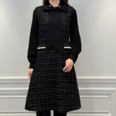 首元のノーカラーはすっきりとした印象で、マフラーやストールとのレイヤードも楽しめます。フロントには光沢感あるパールボタンを配し、シンプルながら上品なアクセントに。シルエットはコンパクトで軽やか。着膨れせずすっきりとまとまり、冬のお出かけコーデに強い味方です。