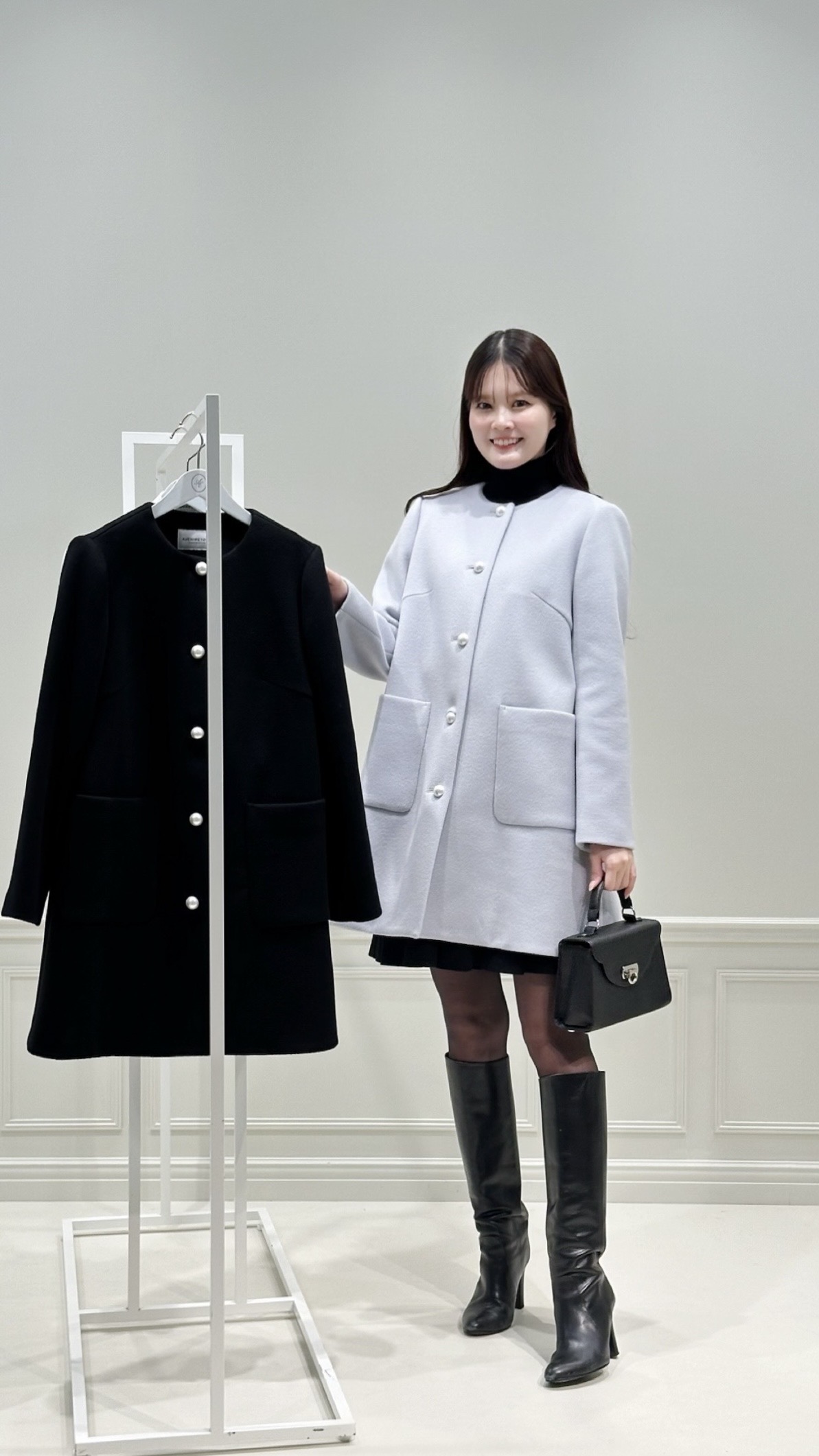 ペールブルー&ブラックの2色コートの着比べや旬なアレンジも!