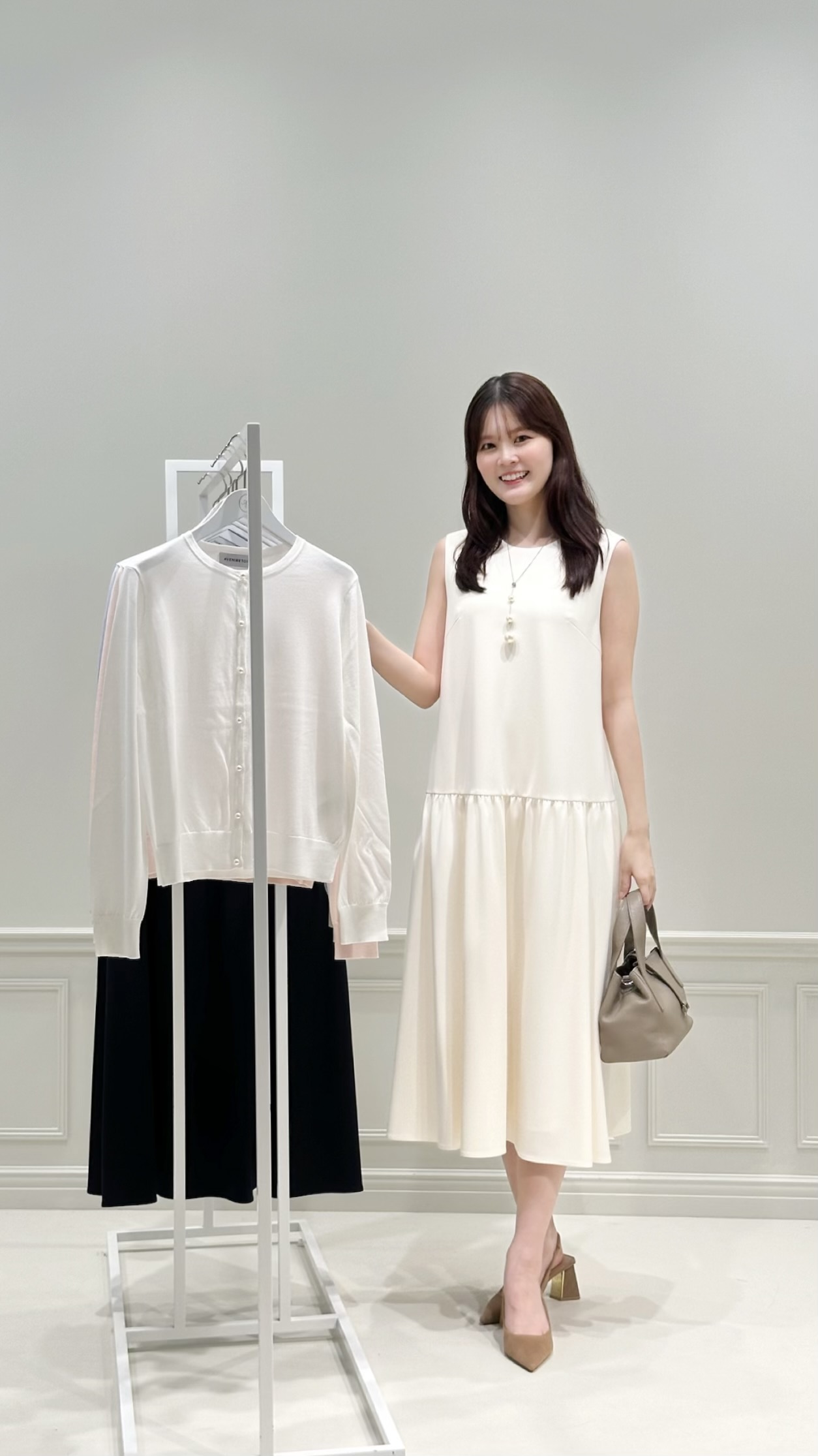主役は春映えするオフホワイトワンピース!