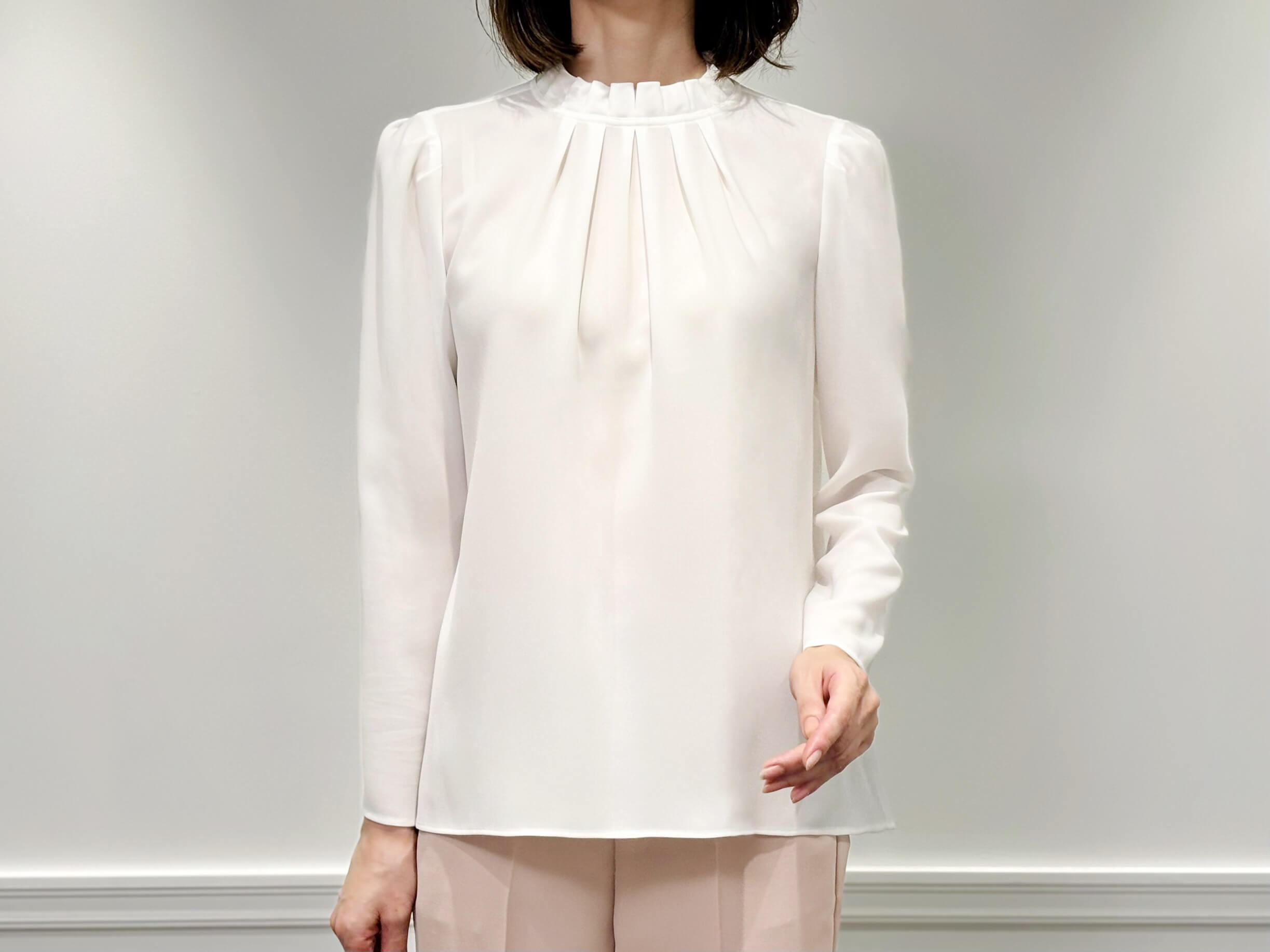 新作入荷情報〈フリルネックタックブラウス〉