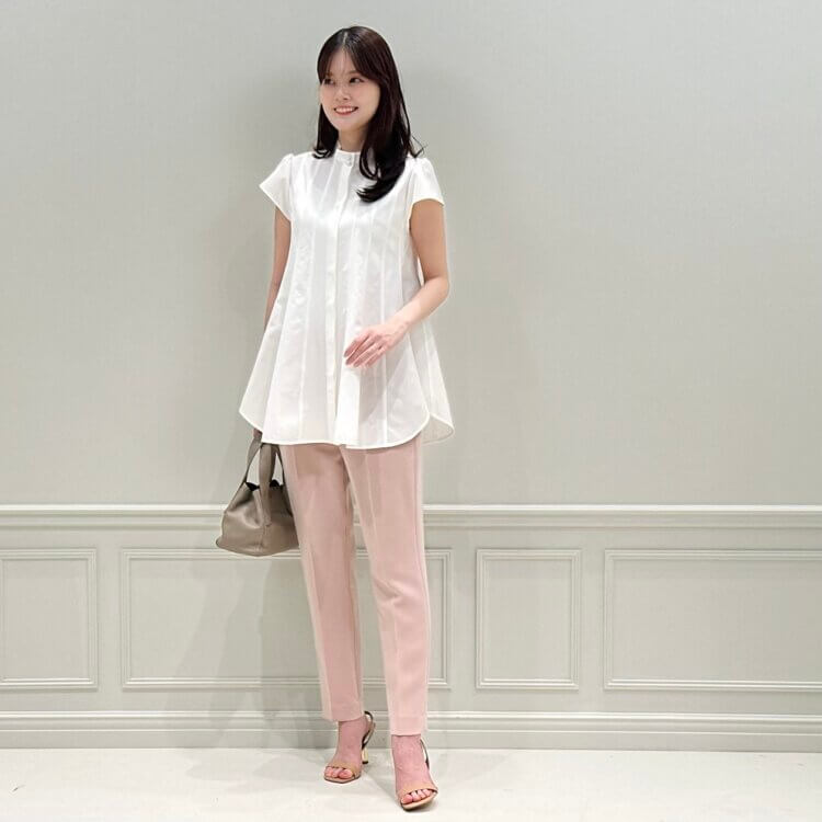 コットンの入った素材で涼しげな印象の1枚。