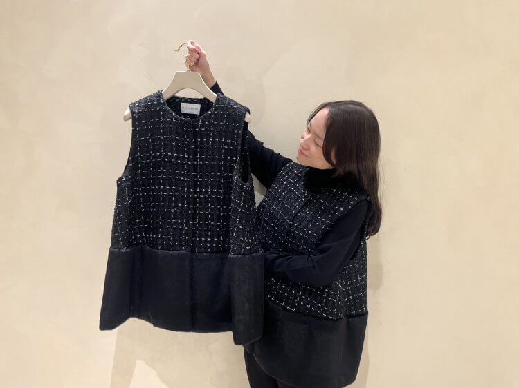 今週のCHECKアイテム!/ ファンシーツイードファー切替ジレ @阪急うめだ本店