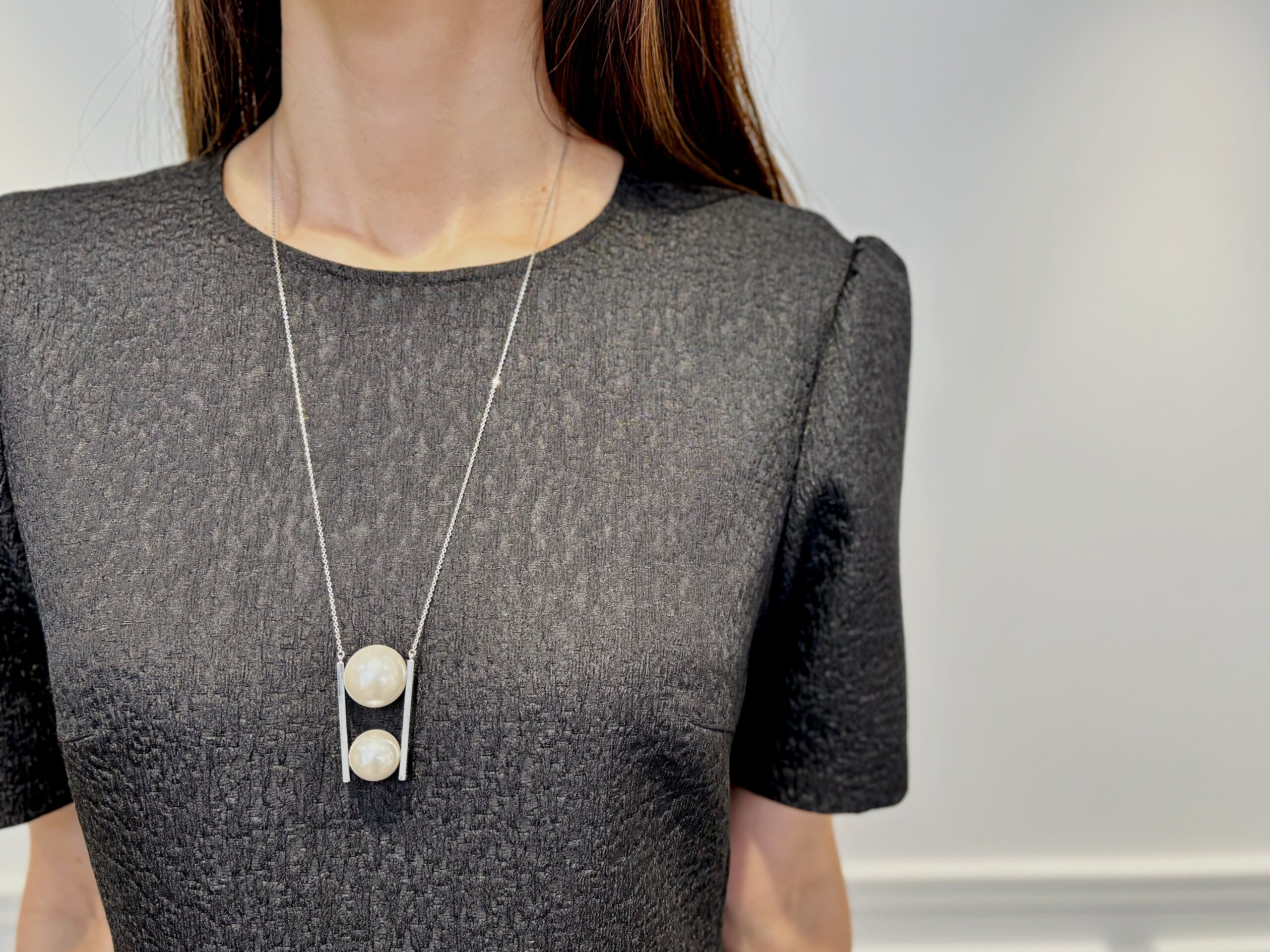 大き目の2連パールにサイドバーを配置した個性的なデザイン。