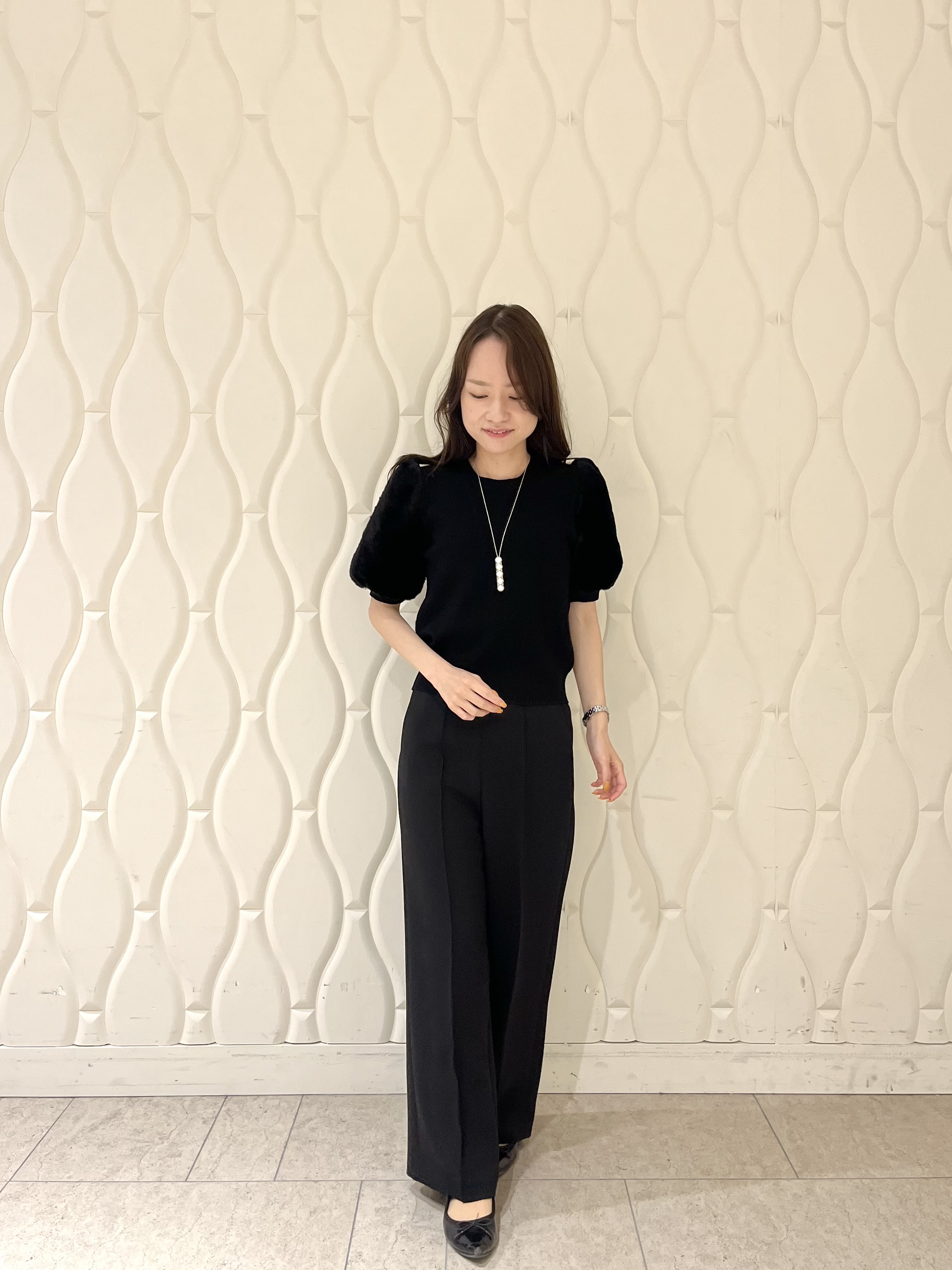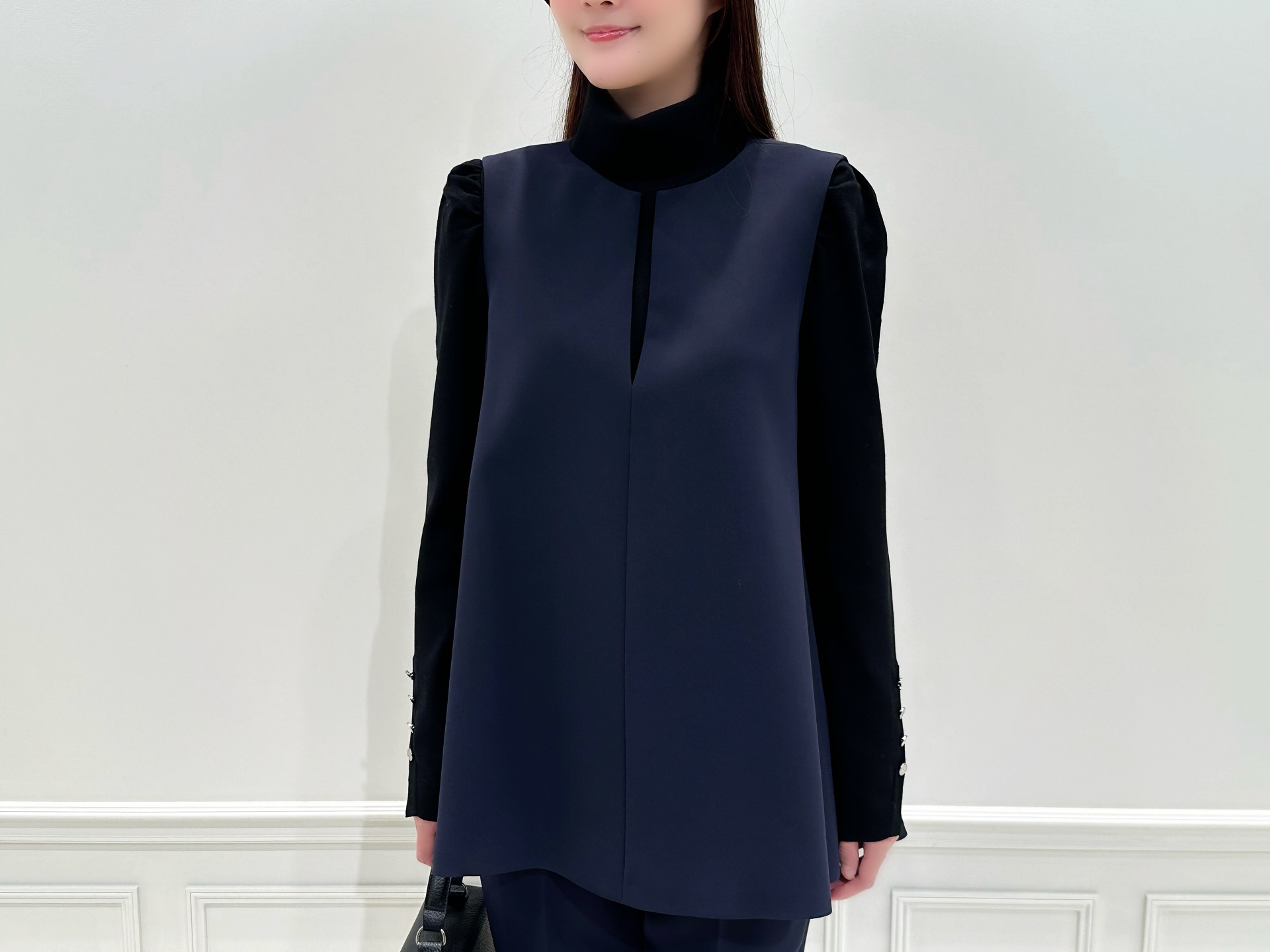 コクーンシルエットの袖が、柔らかさを感じさせるエレガントな一着です。