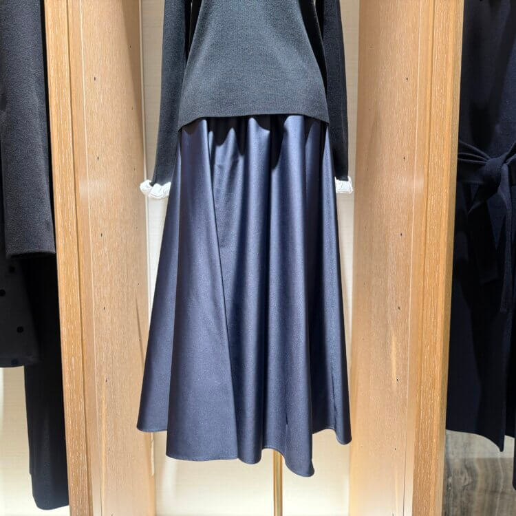 少し硬めのしっかりとした生地感で、フレアシルエットを360度キープしてくれるの嬉しいポイントです♪