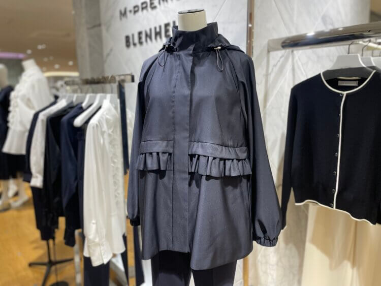 機能性と実用性に、ウエストのフリルやペプラムシルエットでm,i,dらしさを加えたパーカー。
