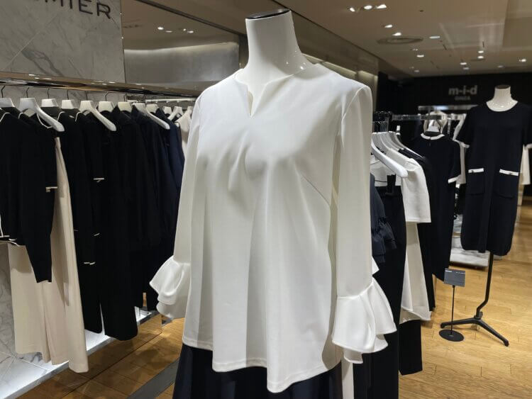 今年は首元を綺麗に見せてくれるキーネックに、お袖にティアードデザインを施した