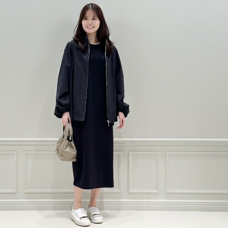 シックな色使いでありながらも、ふんわりとした華やかなシルエットが大人可愛い一枚。