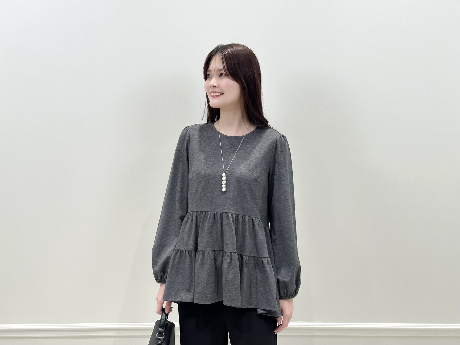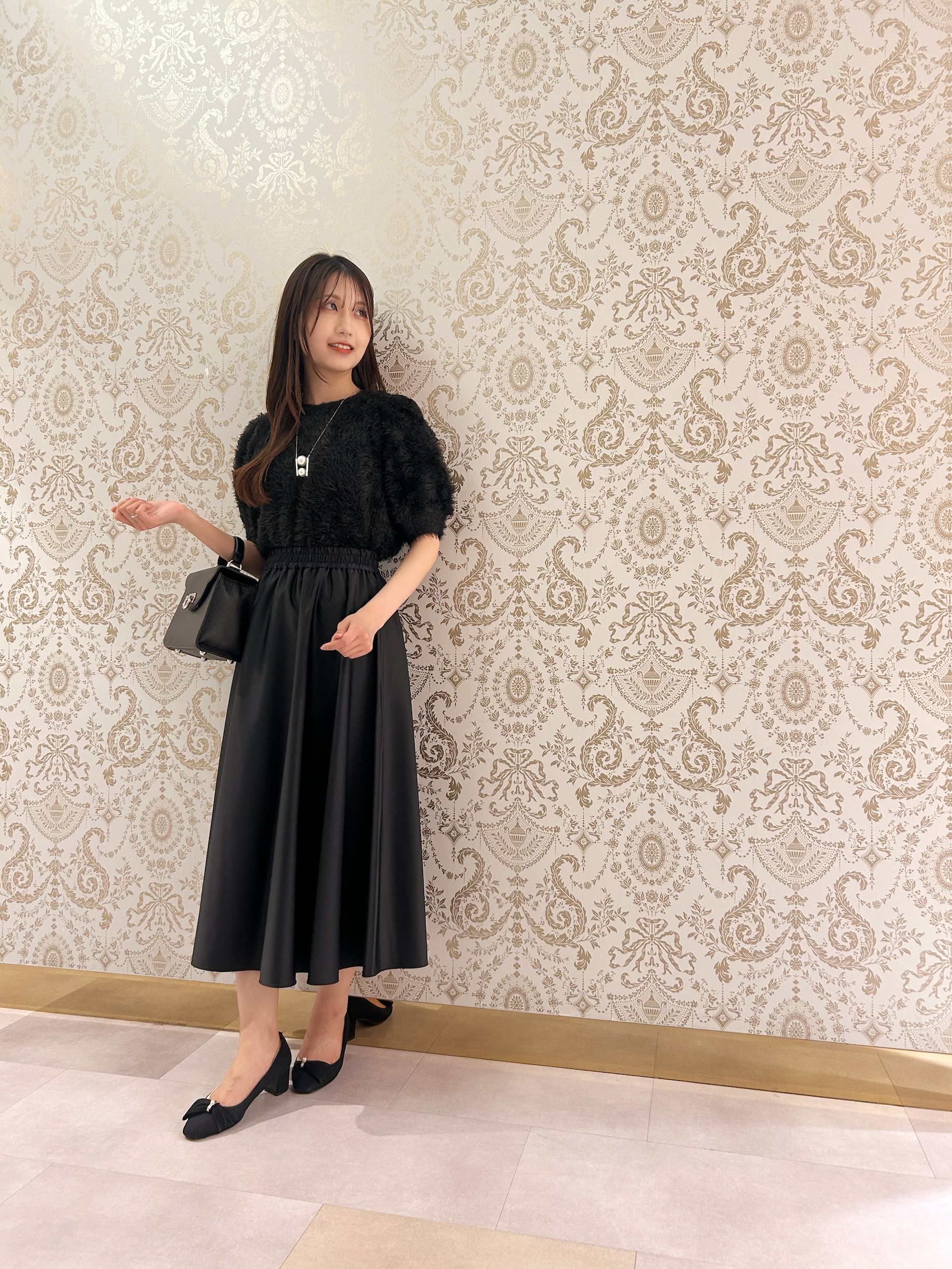 しなやかな落ち感と程よいハリ感を併せ持ち、立体的なギャザー切替デザインが華やかなシルエットを演出します。
