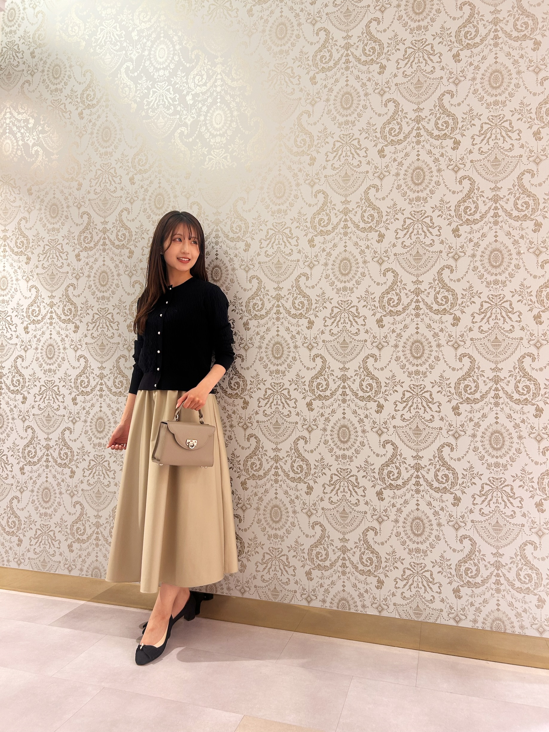 サイドには大きめのパールボタン飾りを配し、華やぎと女性らしいエレガンスをプラス。