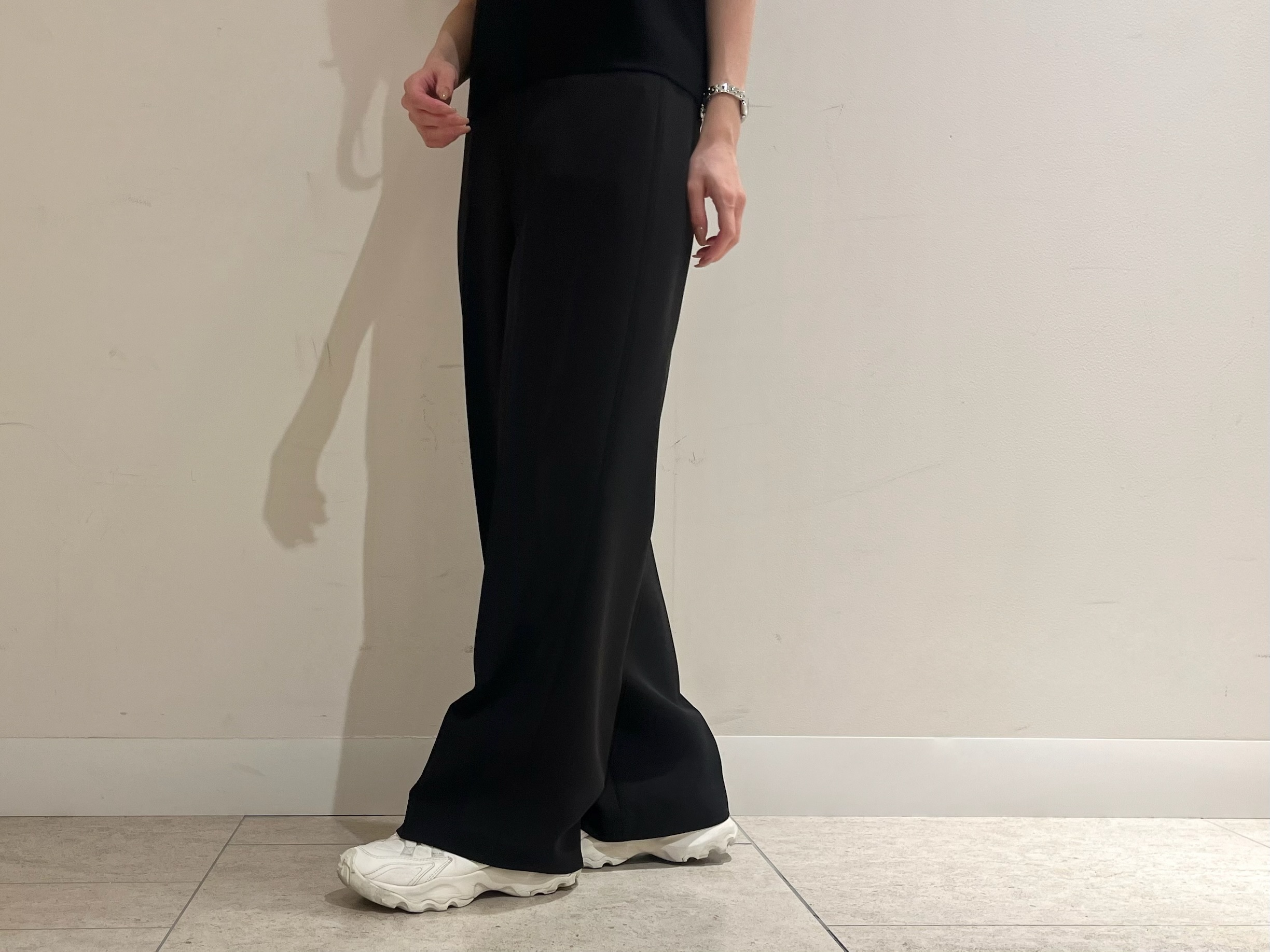 程よくすっきりとしたストレートワイドシルエットは、レッグラインを拾わずスタイルアップ効果も期待できます。