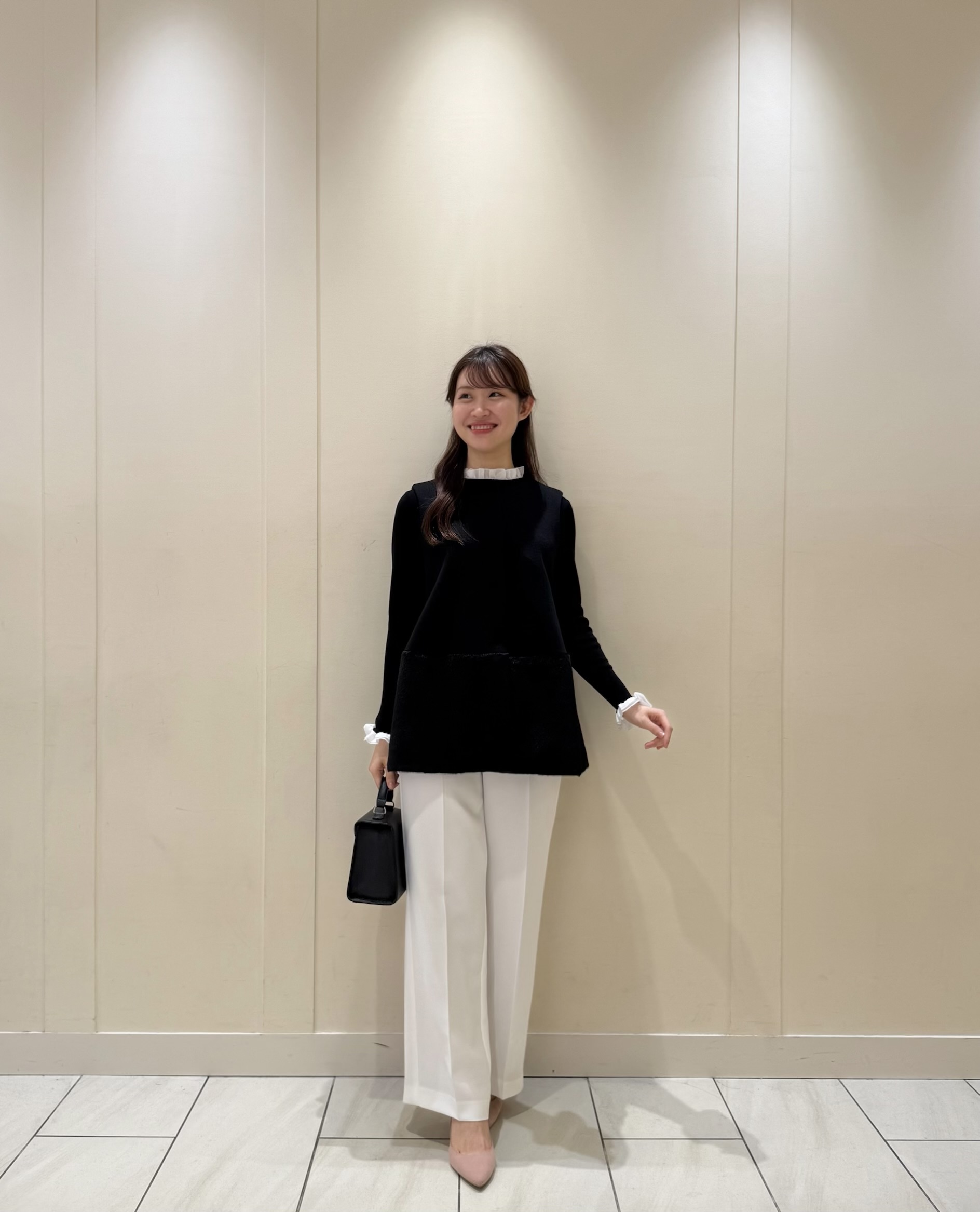 長めの丈感のシャツやブラウス等、幅広くスタイリングに取り入れていただける優秀アイテムです。