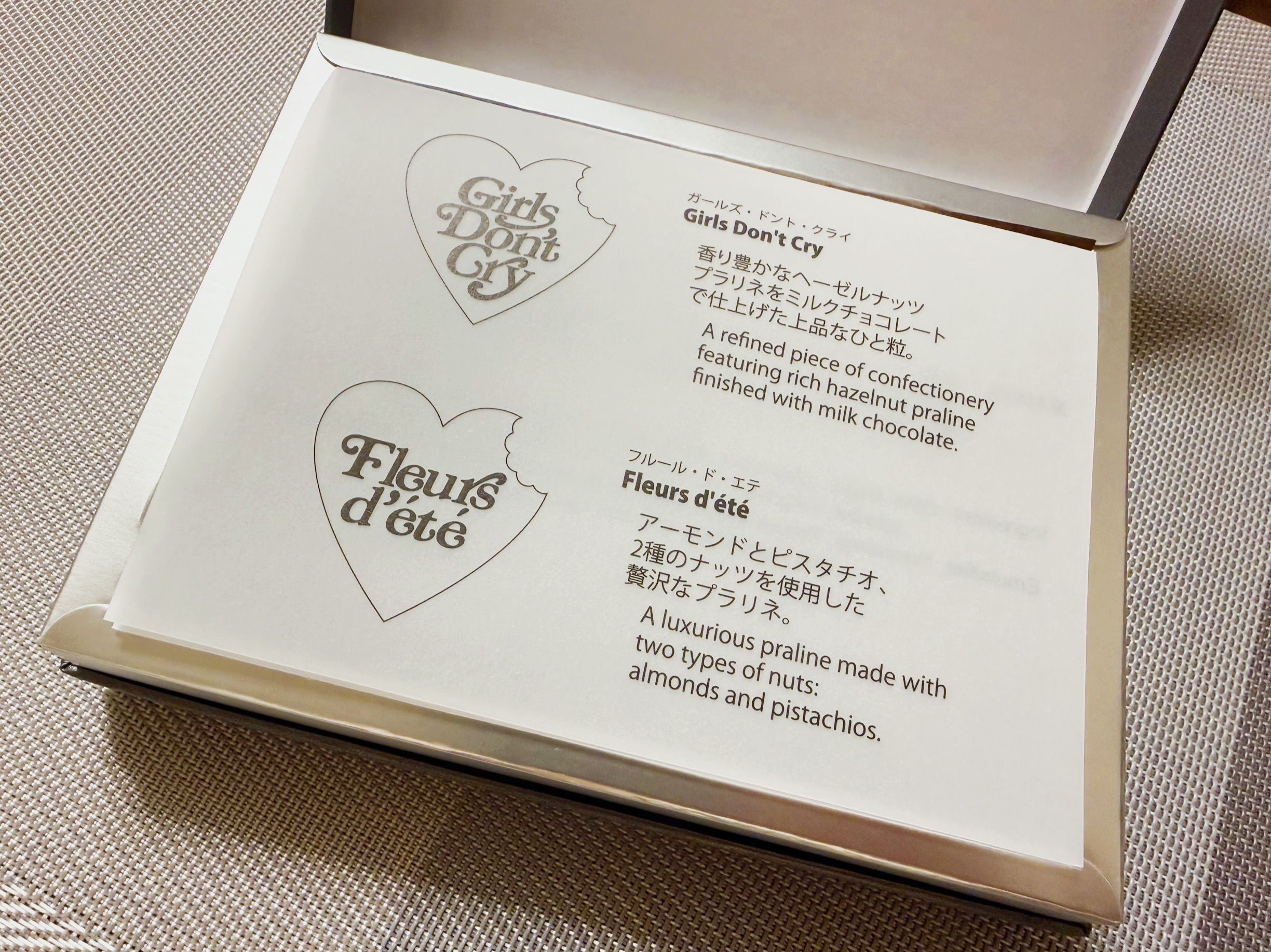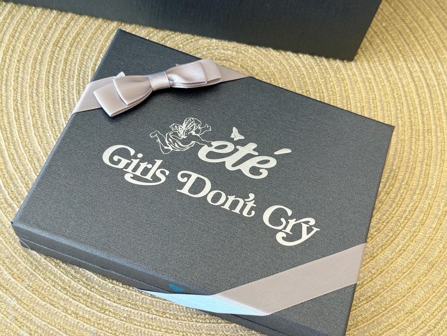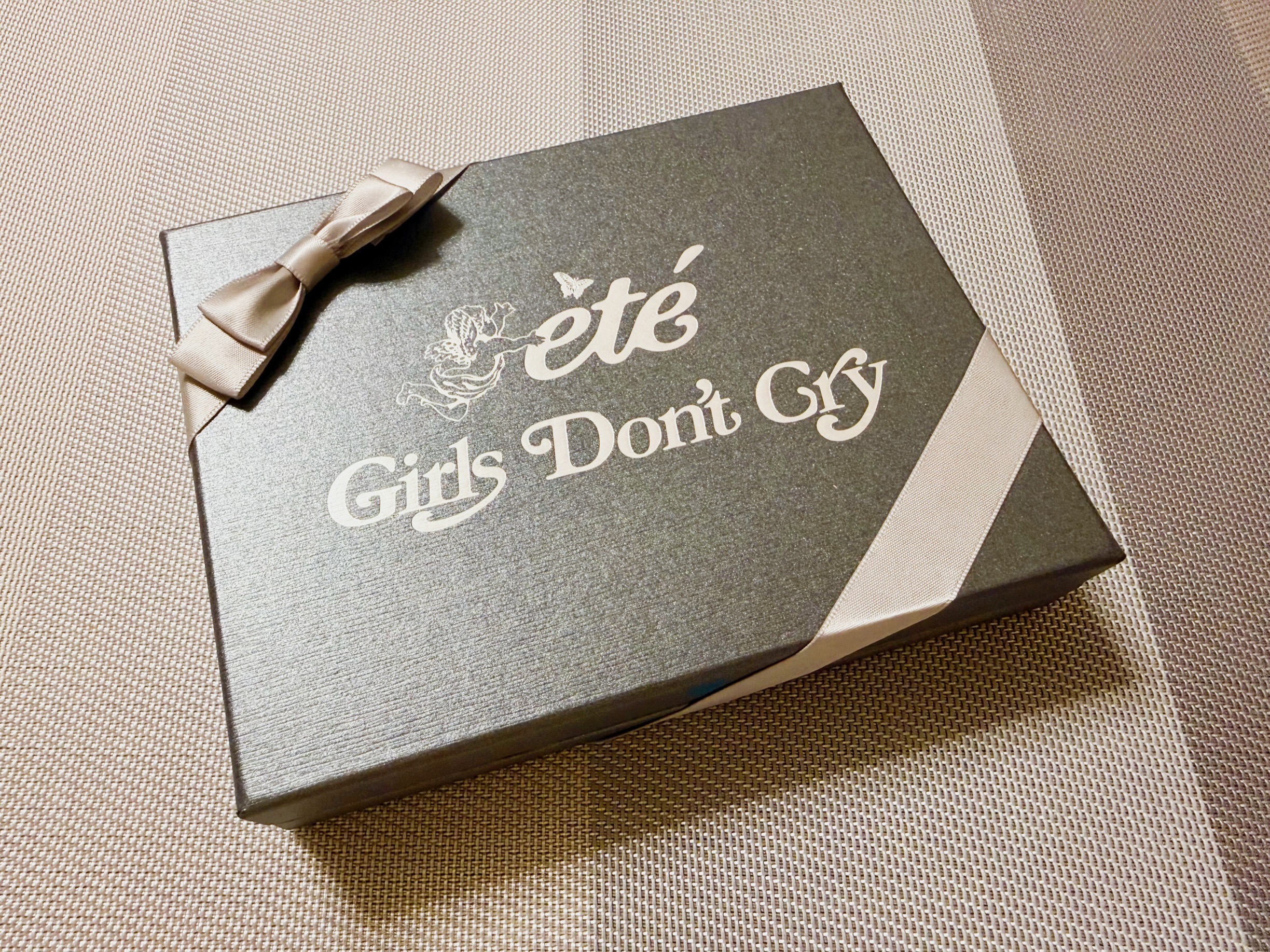 été(エテ)× Girls Don’t Cryのショコラボックスです。シルバーを基調にしたボックスに、ロゴの存在感。さらに淡いリボンがきゅっと効いていて、開ける前から気分が上がります。