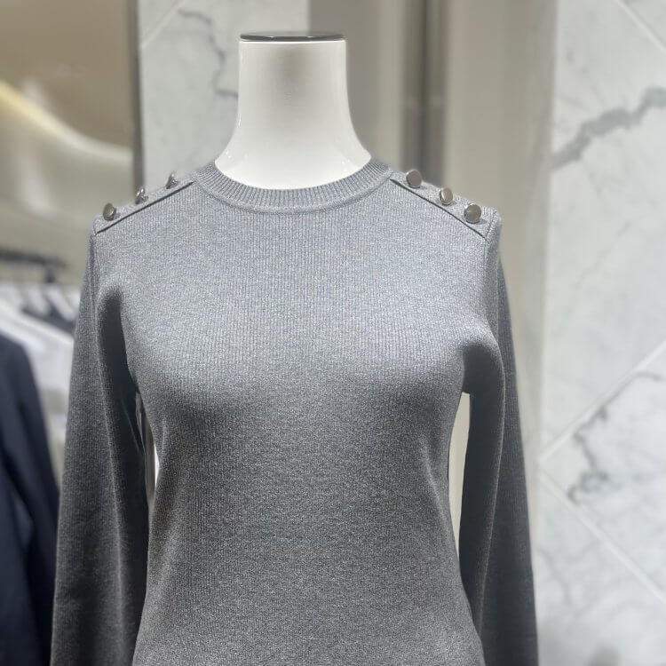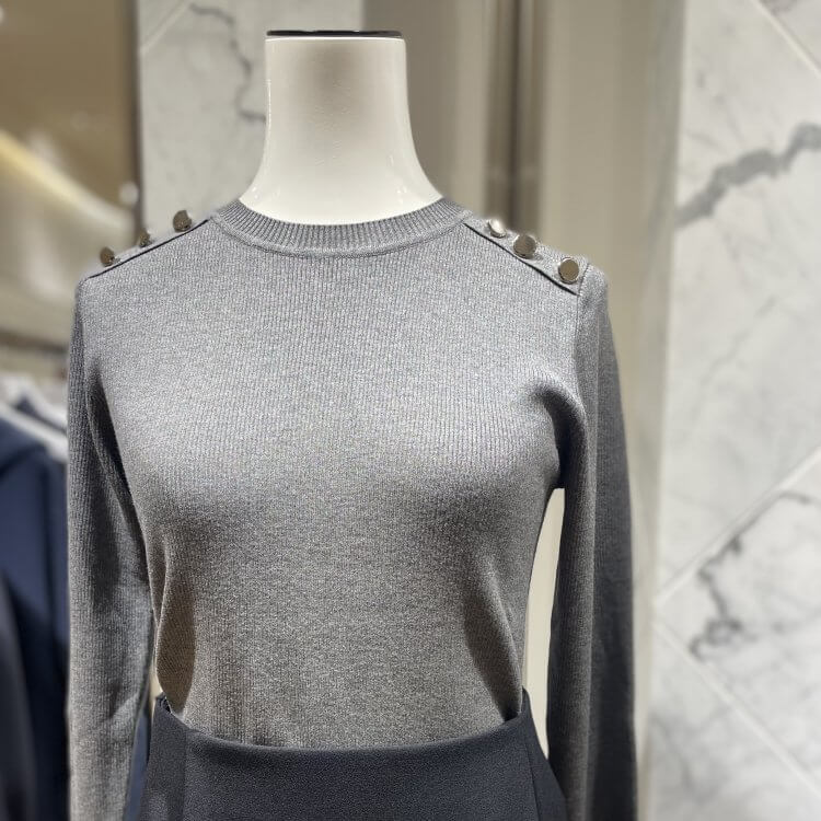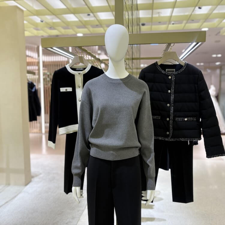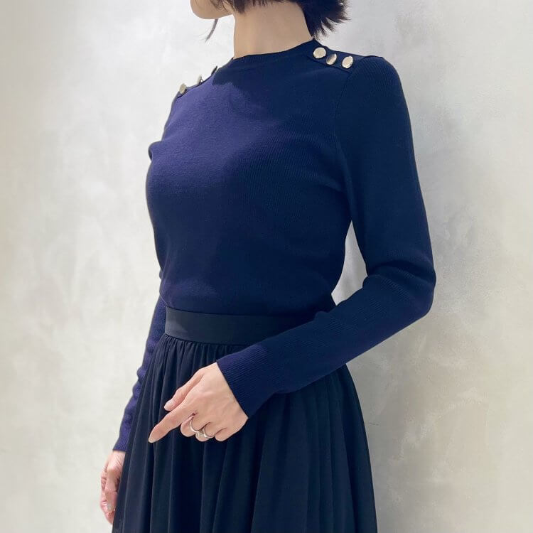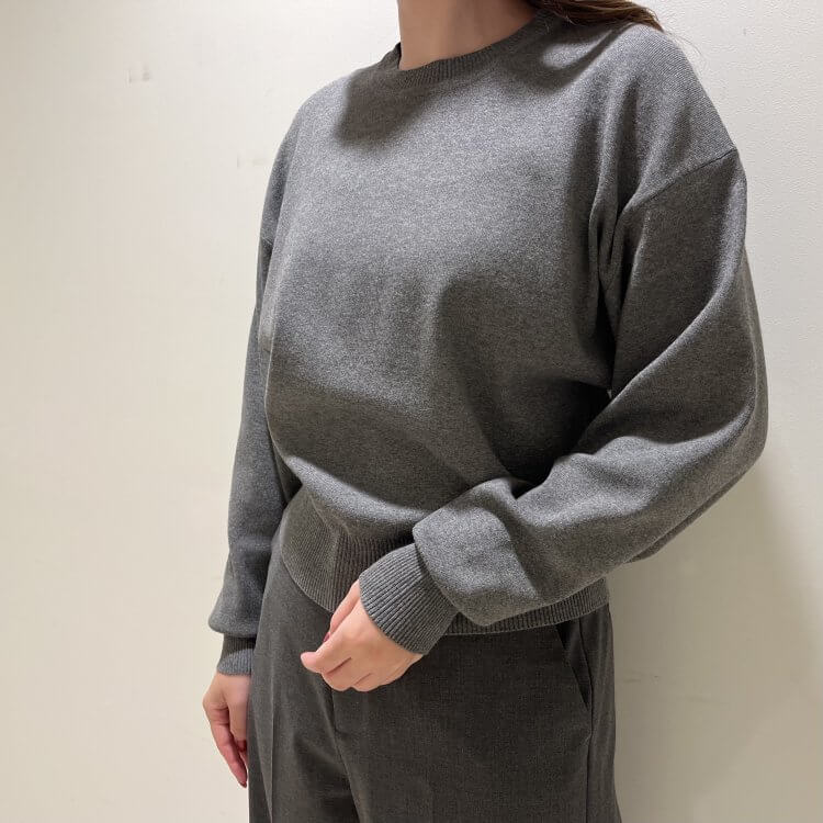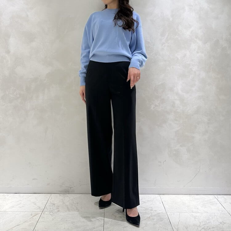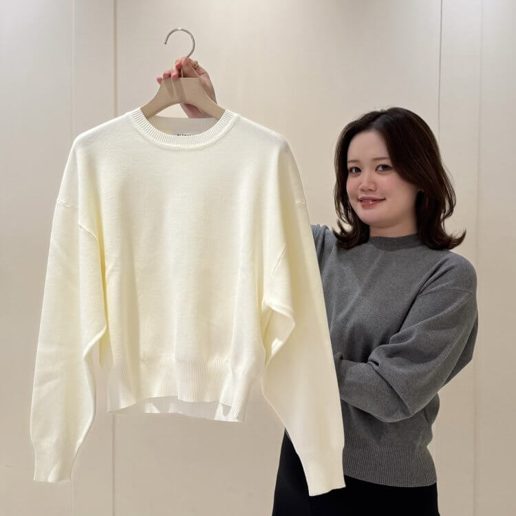フレアスカートにあえてオーバーサイズニットをOUTスタイルで合わせて、こなれ感漂うスタイリングにしました。