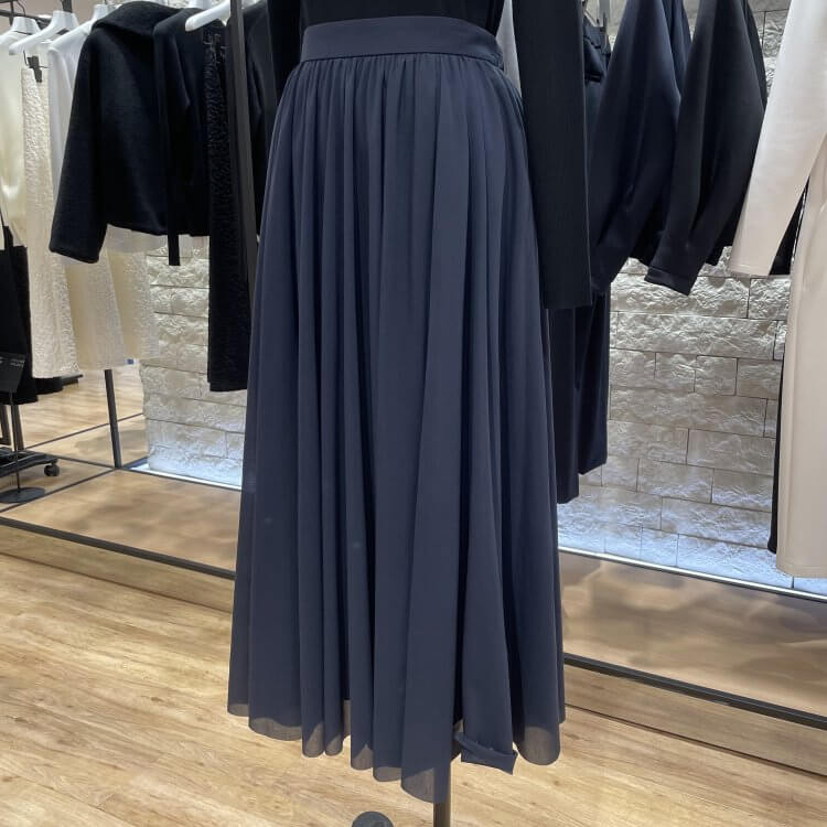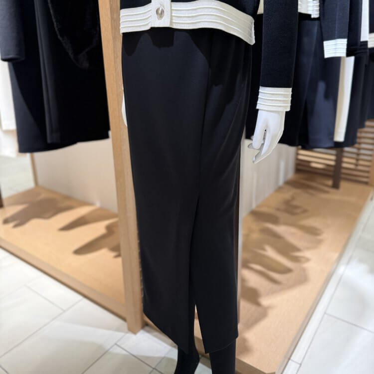 ハリ感のある形状記憶素材や、くるぶしまでかかるロング丈がモード感をプラスしてくれ、履くだけで洒落見えを叶える一枚です◎