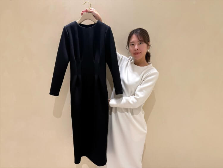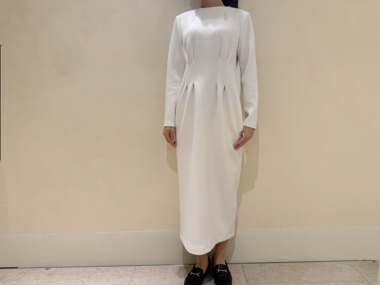 一枚でコーディネートが完成する上品なデザインはお出かけやお食事シーンにもぴったりの一枚です。ぜひ、店頭にてお試しくださいませ♪