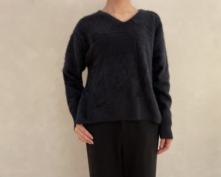 思わず触れたくなるようなふわふわと柔らかな着心地のニットプルオーバー。