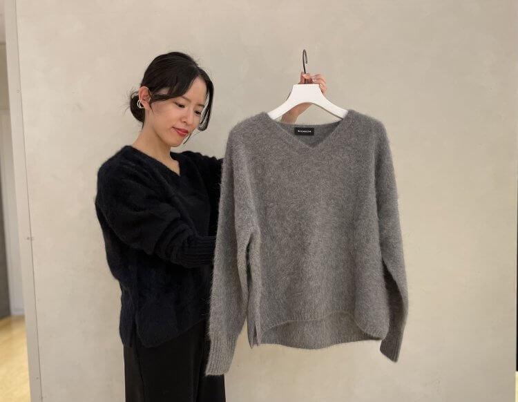 カシミヤブレンドで保温性抜群でタイトスカートやワイドパンツとボトムスを選ばずお召しいただけます◎