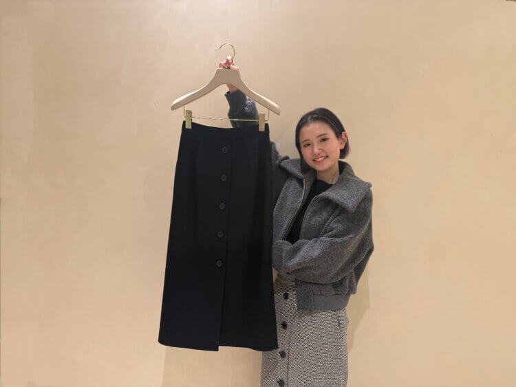 身幅にゆとりを持たせつつ、コンパクトな丈感でバランスが取りやすく、パンツにもスカートにも合わせやすい一着です。ぜひ、店頭にてお試しくださいませ!