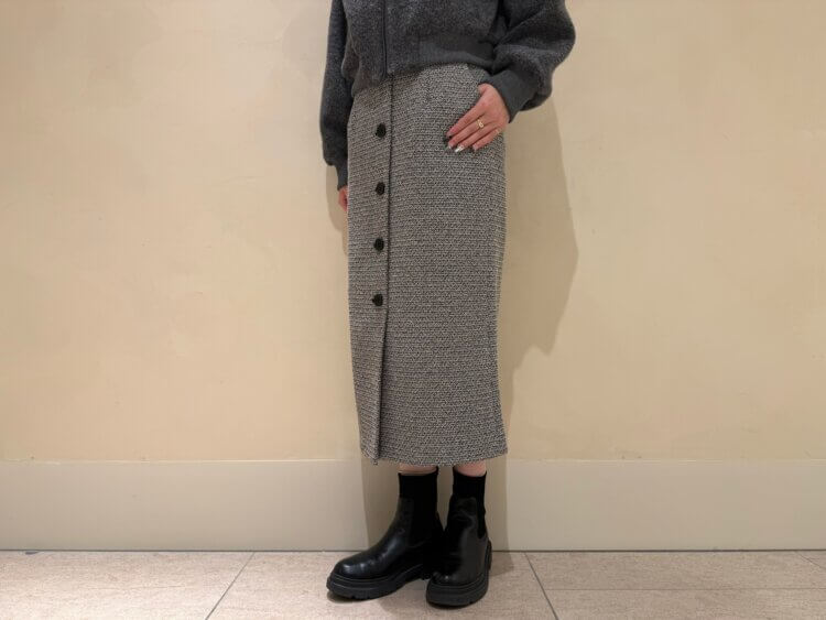 フロントボタンツイードタイトスカート ¥38,500