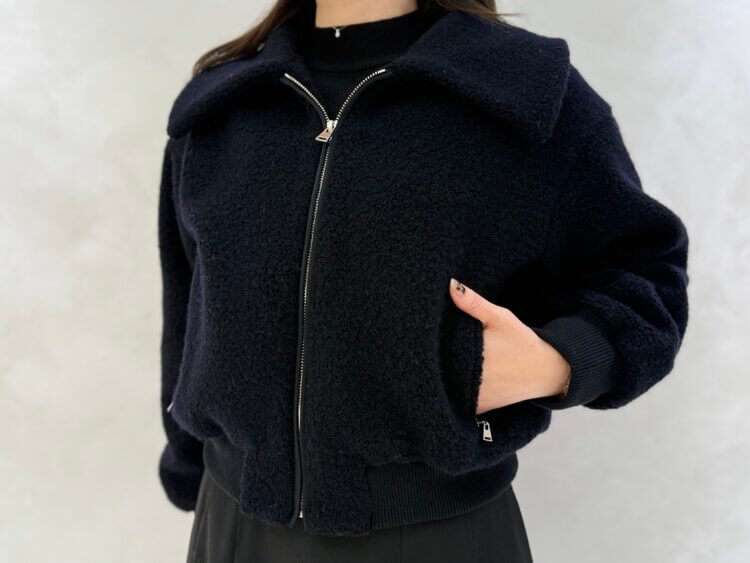 暖かみのあるシープパイルボア素材を使用した、軽やかで上質感漂うブルゾン。