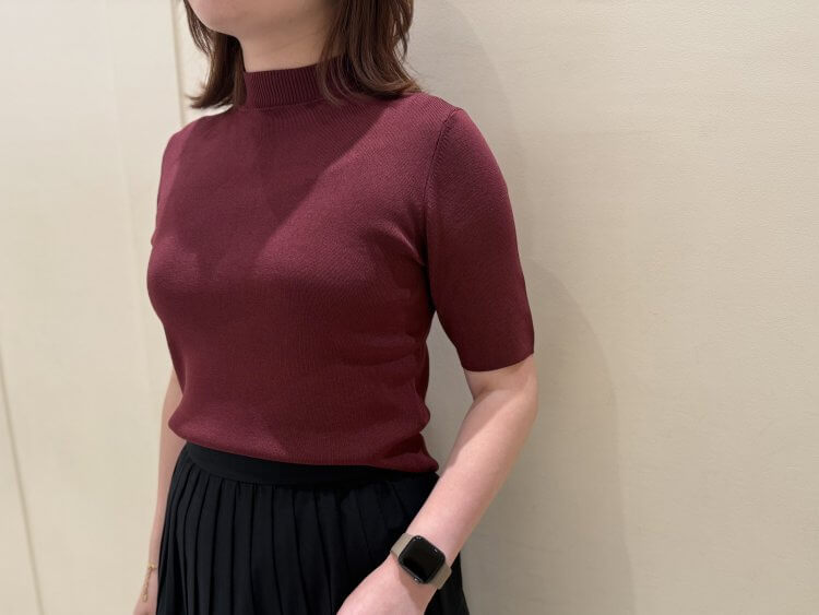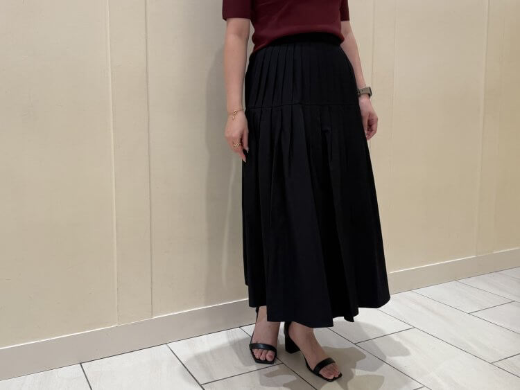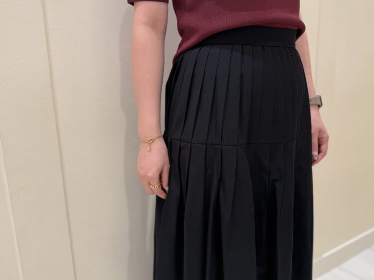肌にしっとりと馴染む上質な定番ニットに、揺れ動くシルエットが綺麗なプリーツスカートを合わせた秋にぴったりのシックなコーディネートをご紹介します!