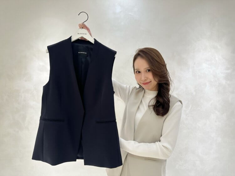 滑らかな落ち感とハリを備えた上質素材が魅力のノーカラージレ。