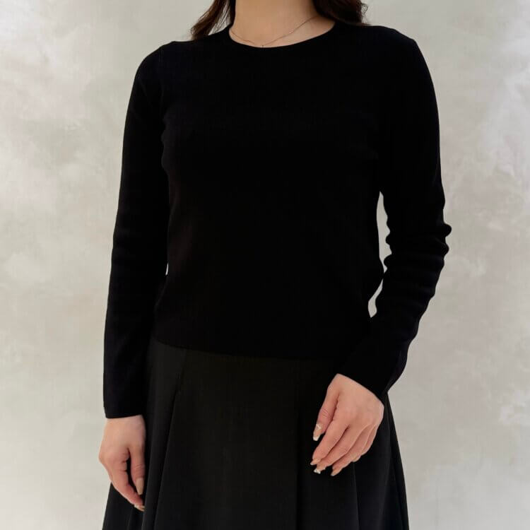 程よくウエスト周りがシェイプアップされたラインがカットソー生地ではありながら