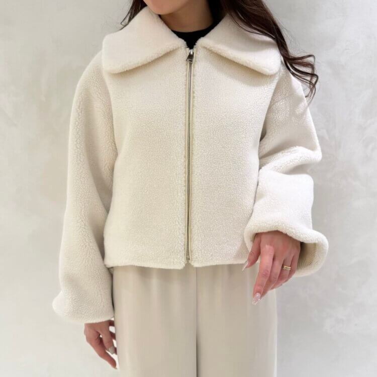 艶やかなパールボタンと立体的なキルティングが、羽織るだけで上品な雰囲気に纏まり、