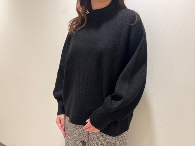 ハイネックデザインにふんわりとしたドルマンスリーブの掛け合わせが