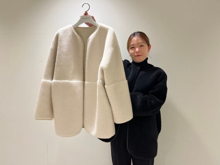 ボリューム感の異なるボアの切り替えデザインが膨らみを持ちにくく