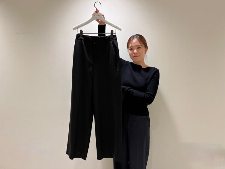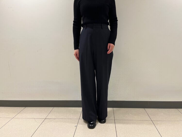 幅広すぎないワイドシルエットのパンツで、適度なハリ感が綺麗にレッグラインを魅せてくれます◎